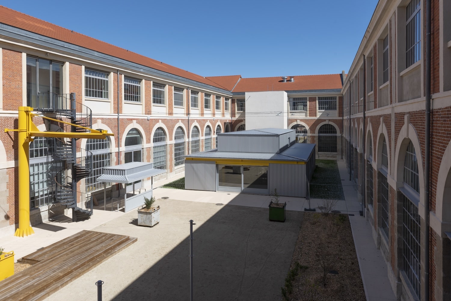 Le lieu, c’est l’ancienne Manufacture d’armes, le bâtiment 242 de la Cité du design, protégé au titre des Monuments historiques, a été réhabilité par l’agence lyonnaise SILT avec une attention portée aux matériaux existants : poutres en béton, charpentes métalliques, facades en pierre et en brique.