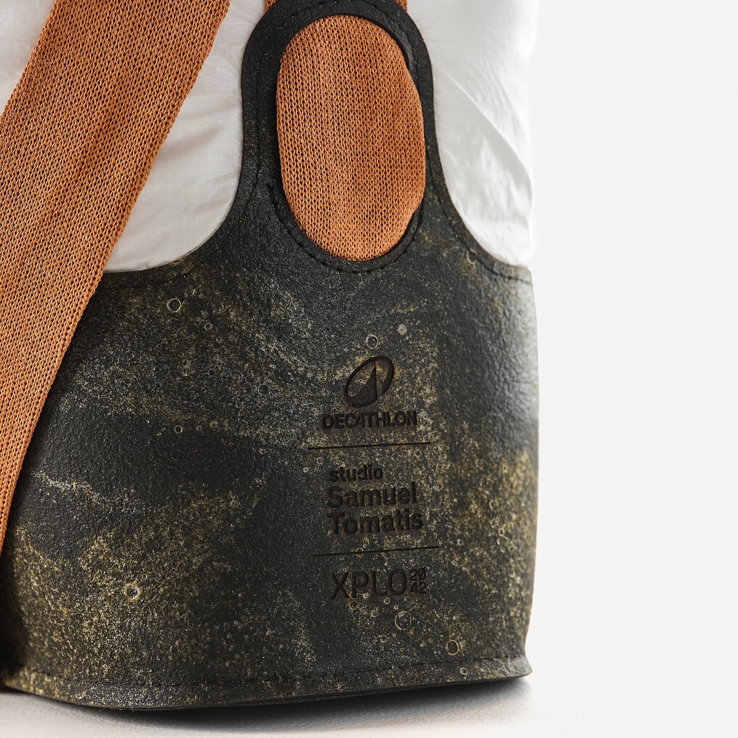 Au coeur de cette exposition, un focus sur le travail du designer français Samuel Tomatis, développé en collaboration avec Anaïs Jarnoux, témoigne d’une recherche approfondie sur les biomatériaux appliqués au sport et à la mobilité. Le projet XPLO 2042 explore le potentiel des algues à travers des objets qui incarnent les thématiques Wellness et Mobility : un kimono matelassé, un sac Algae Bag, une paire de chaussures inspirées des geta japonaises, et un Pod Monowheel ultra-compact… et d’autres projets encore… Bravo pour ce beau travail inspirant !