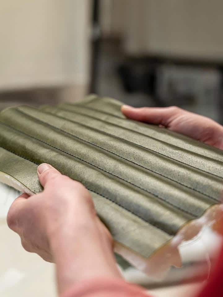 Ce travail sur les algues redéfinit les contours de la tapisserie contemporaine en réinventant formes, textures et finitions. Samuel Tomatis et Anaïs Jarnoux ont validé l’ensemble des techniques liées à ces matériaux pour les décliner dans les domaines de l’objet, l’agencement, l’accessoire, la mode ou le packaging, démontrant ainsi la polyvalence du Phycotex et son potentiel pour des applications prospectives multiples.