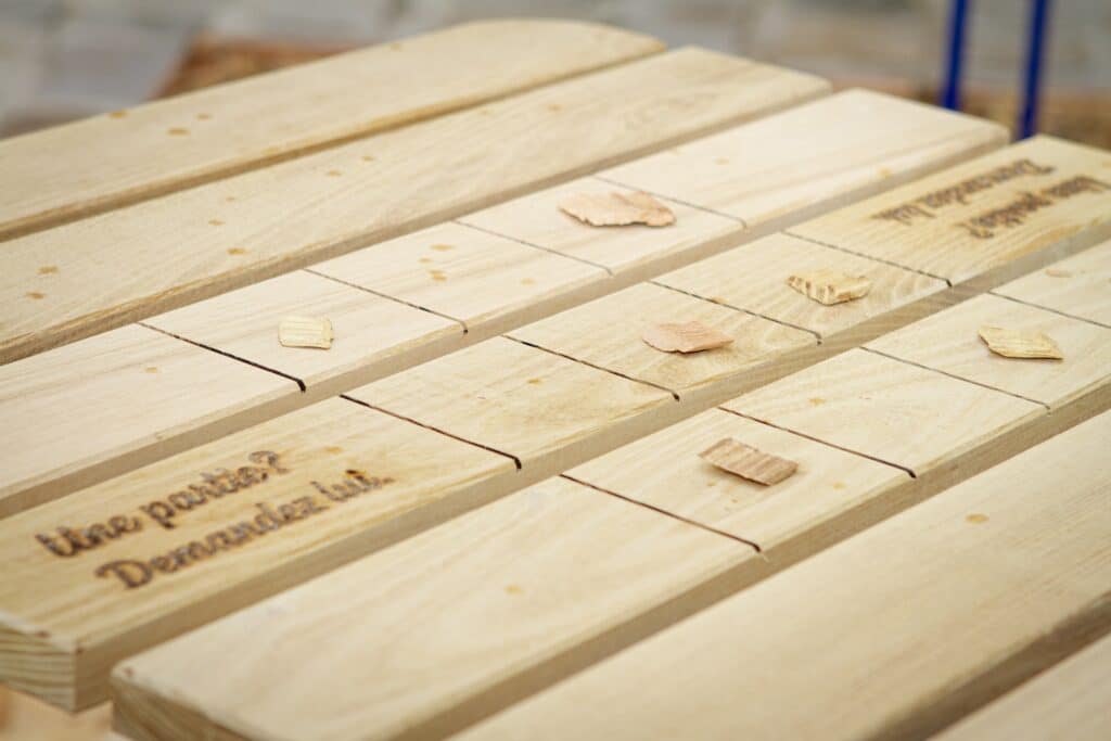 Ce qui distingue LIESO, c’est sa capacité à faire du mobilier urbain un outil de dialogue, sans jamais forcer l’interaction. Une gravure discrète sur la table, “Une partie ? Demandez-lui.”, transforme un simple plateau en terrain de jeu, un morpion gravé dans le bois suggère un échange. On connait depuis longtemps les espaces pour jouer aux échecs et si nous multiplions ces espaces ? La boîte à livres, elle, chuchote presque : “Tu me prêtes une petite histoire ?” Ces détails sont plus que des ornements : ils portent une intention claire de cultiver les communs, de favoriser les rencontres fortuites, les gestes partagés.