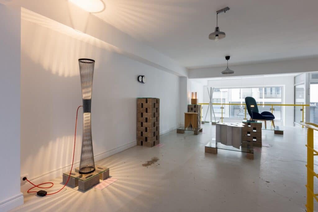 Avec le soutien de partenaires locaux comme Vitralux (manufacture de vitres et miroirs) et Hornbach pour les briques, le dispositif mettait en valeur les matières, sans artifices donnant à l’exposition un caractère à la fois humble et sensé.