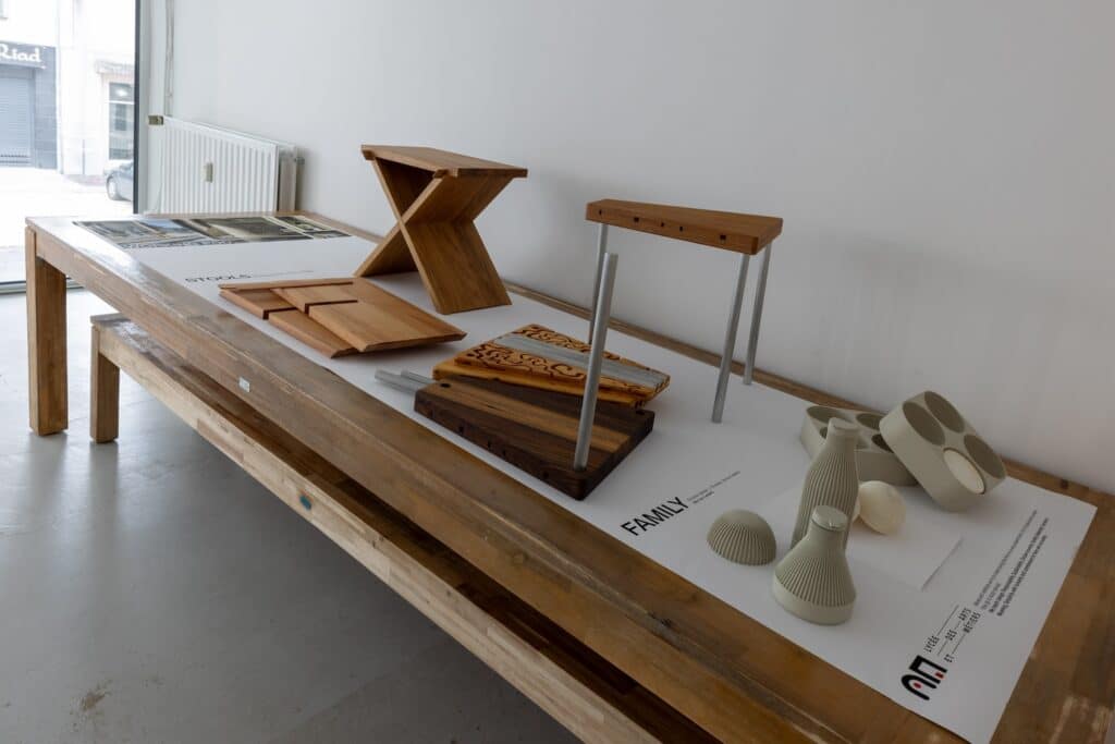 L’exposition ne se tenait pas dans un musée ou une galerie classique, mais dans un ancien café/petite restauration fermé depuis trois ans situé rue de Strasbourg, dans le quartier “Gare” de Luxembourg-ville. Ce choix, loin d’être anodin, participait d’une volonté de réinvestir un espace urbain populaire, vivant, parfois brut, mais authentique. Dans ce quartier où le design n’est pas habituellement mis à l’honneur, l’exposition a joué le rôle de catalyseur.