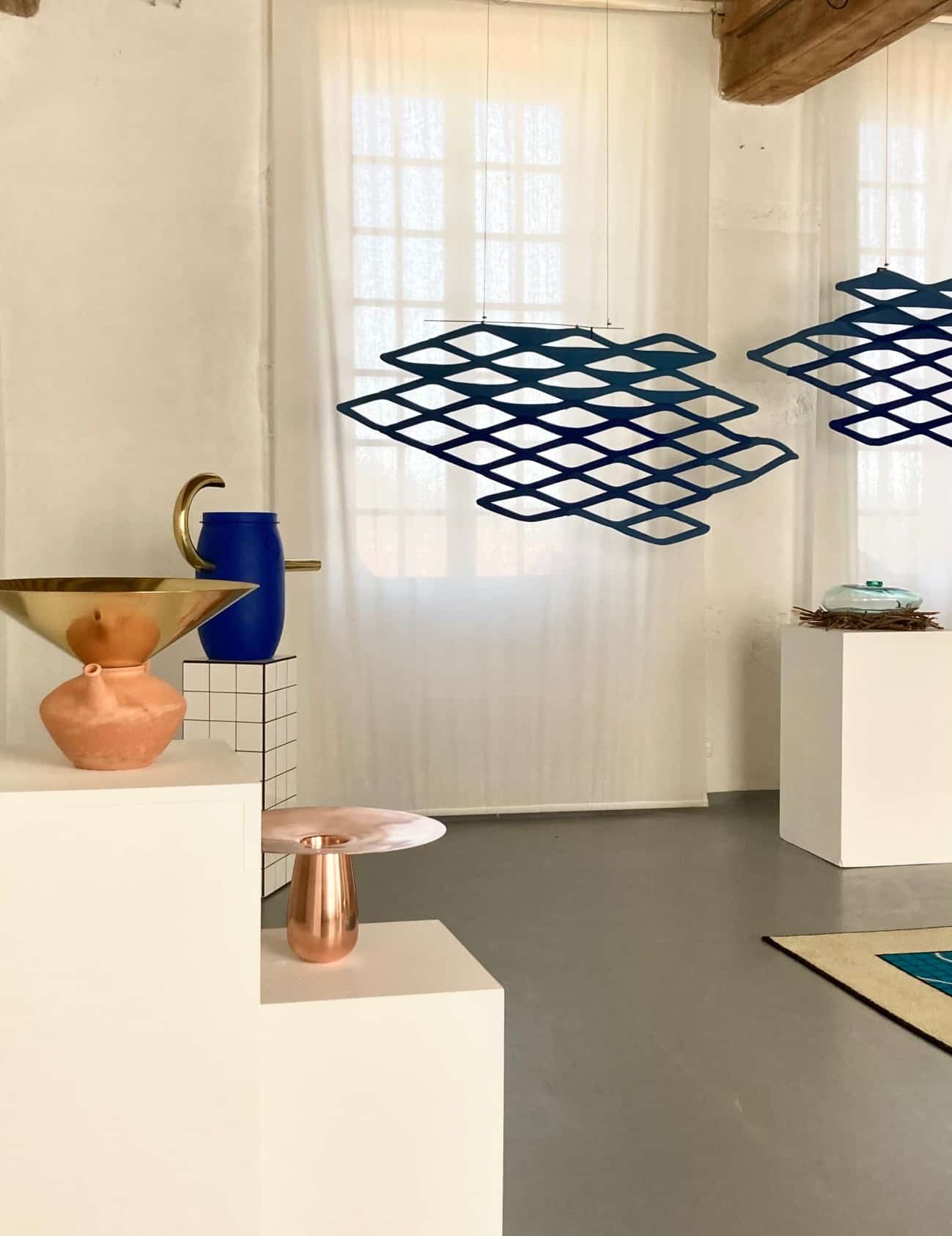 Chaque élément de l’installation témoigne d’un dialogue entre matériaux traditionnels et savoir-faire contemporains. L’argile, tournée à la main par le potier Goicoechea à Ossès, forme la base de ces autels collecteurs. Cette céramique brute évoque les sculptures mouvantes en argile où le matériau devient vecteur d’émotions et de mouvement.