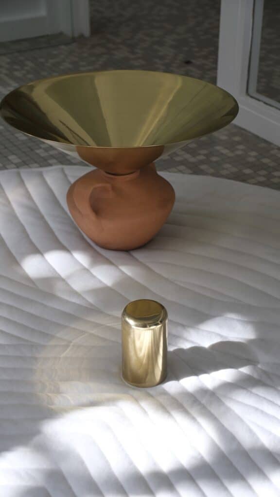 La finition des pièces en laiton a été confiée à Franck Truyen pour le traitement de surface à Vigneux-sur-Seine. Ce réseau d’artisans spécialisés illustre la volonté de Clara Rivière de tisser des liens économiques et culturels au sein d’un territoire, faisant de chaque objet un vecteur de connexion entre les savoir-faire. Cette approche fait écho aux projets où les matériaux traditionnels comme le laiton rencontrent des techniques contemporaines, créant des pièces qui portent l’empreinte de multiples mains expertes.