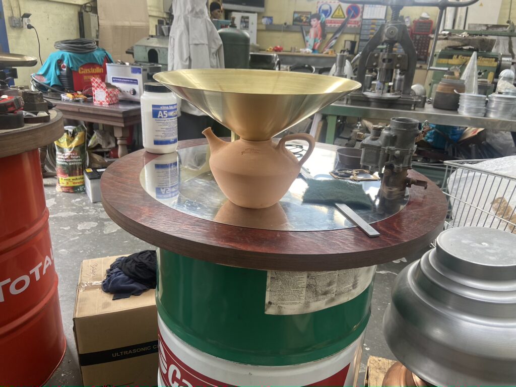 Crédits : Photographies par Marc-Alexandre Ducoté et Marion Saettele. Réalisation en collaboration avec Goicoechea (poterie, Ossès), Francis Parain (repoussage laiton, Chanteloup-en-brie), Franck Truyen (traitement de surface, Vigneux-sur-Seine). Projet développé en collaboration avec Jean-Marie Mouchel, expert en hydroscience, dans le cadre du programme Mondes Nouveaux et de la résidence Nekatoenea à Hendaye.