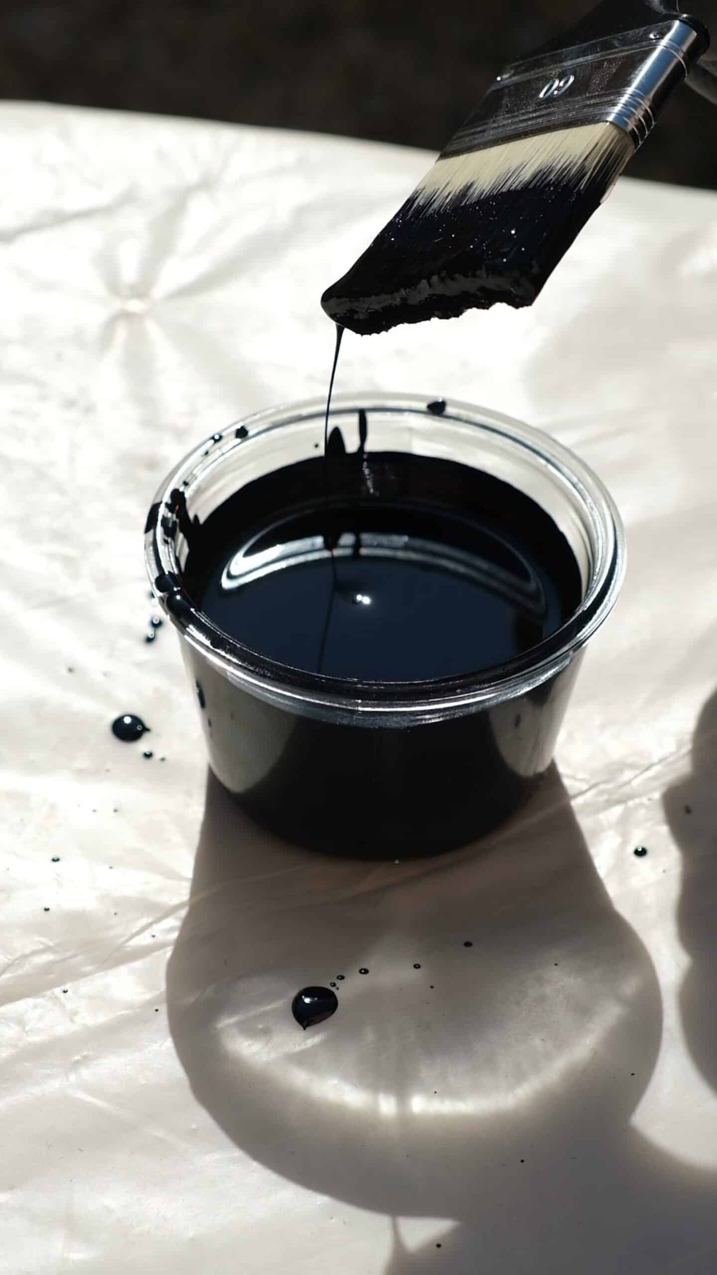 Produit par pyrolyse du bois résineux, le goudron — souvent associé à l’industrie et à la route — se révèle ici dans une toute autre lumière : brillant, visqueux, légèrement irisé, il devient un liant esthétique et fonctionnel. Appliqué à froid, au pinceau, il offre une étanchéité parfaite et une alternative énergétique aux matériaux comme la céramique ou le verre.