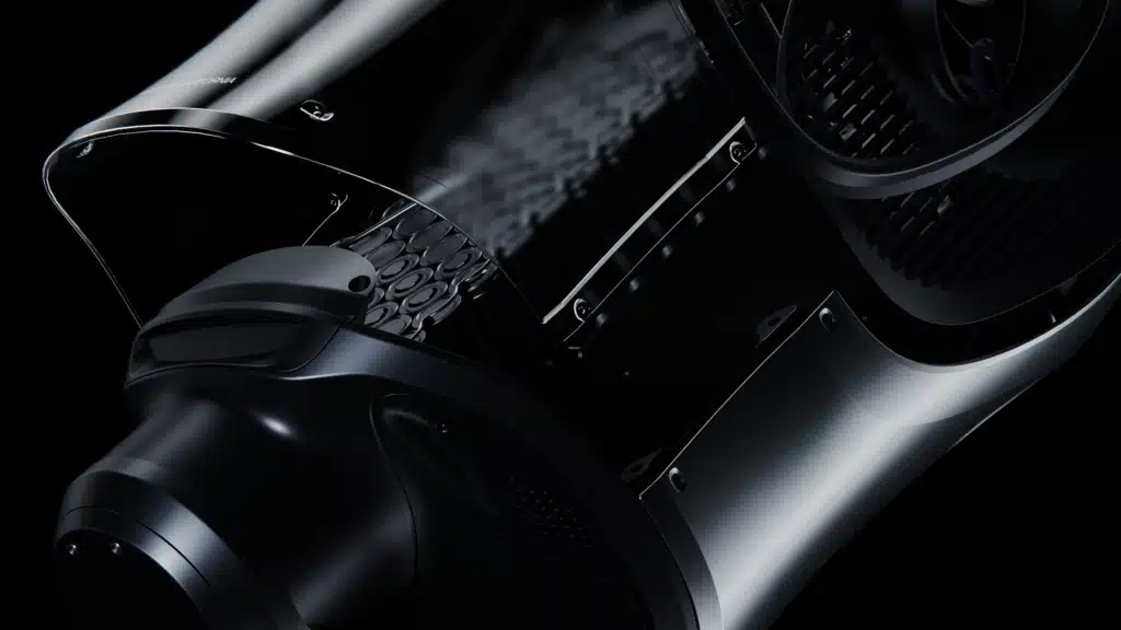 Avec le F.03, cette approche se raffine. La silhouette est plus élancée, plus épurée, construite pour une production à grande échelle. Le design industriel atteint un niveau de sophistication qui pourrait rivaliser avec certains projets de mobilier où l’aluminium et les matériaux techniques sont travaillés avec une attention similaire au détail et à la fluidité des lignes.