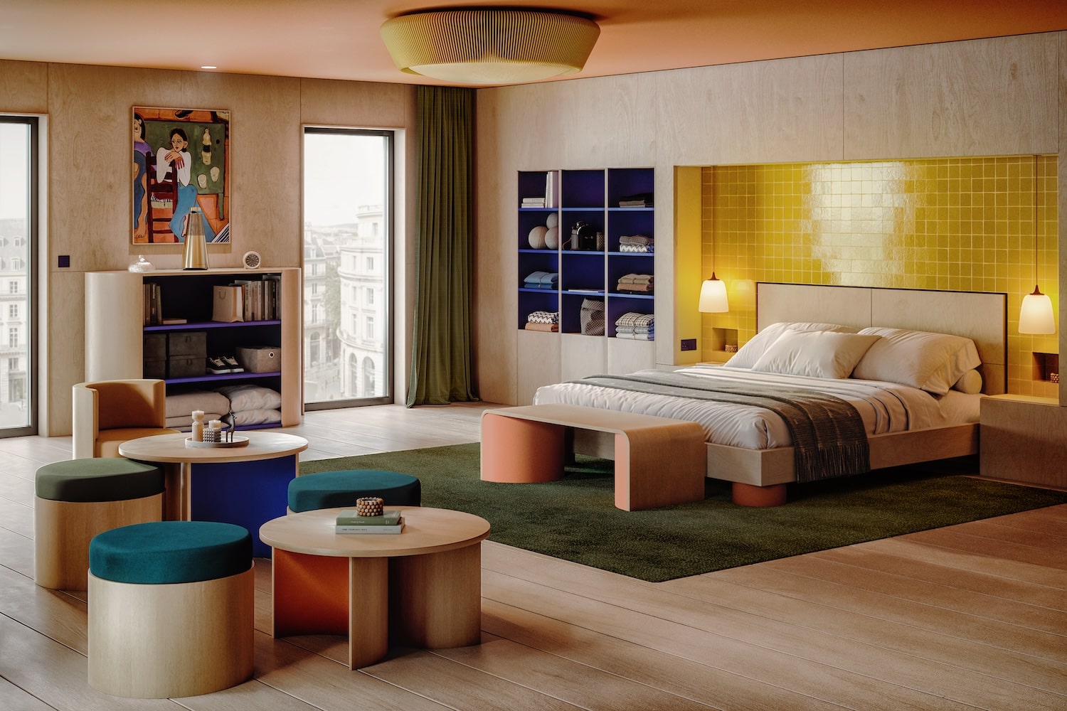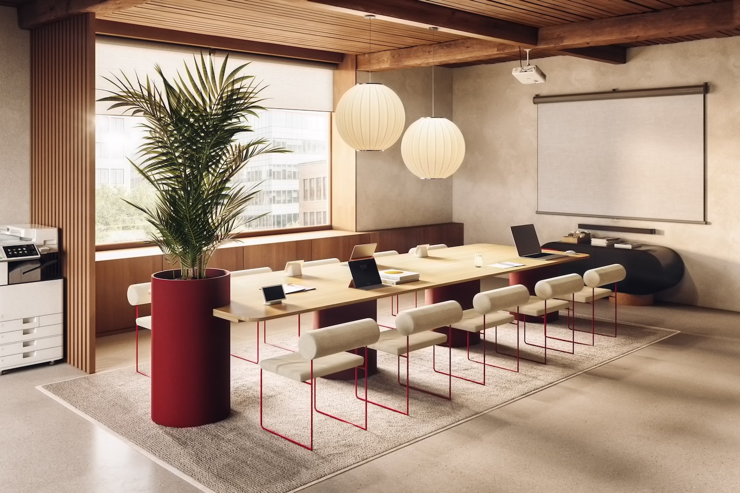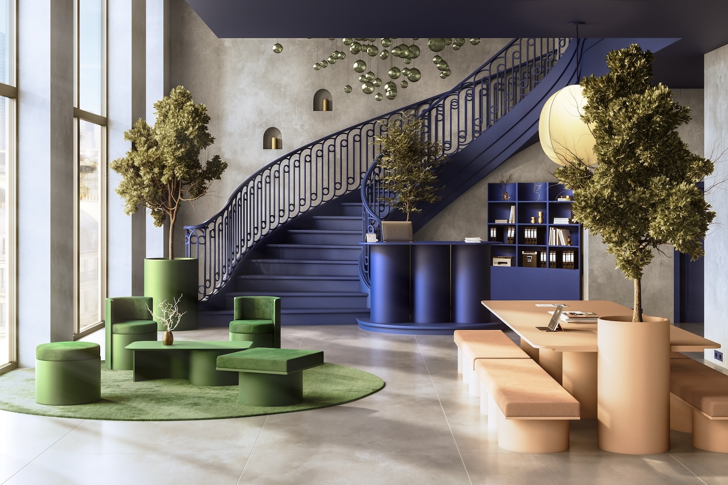 Gimmic Design a conçu l’aménagement intérieur d’un ensemble de 675 m2, mêlant mobilier de catalogue et créations sur mesure, notamment pour l’auditorium. Au total, 1 032 kg de viroles en carton et 48 kg de tubes de papeterie ont été réemployés sur le chantier. Des chiffres concrets, loin du geste manifeste, qui démontrent ce que le réemploi peut produire à