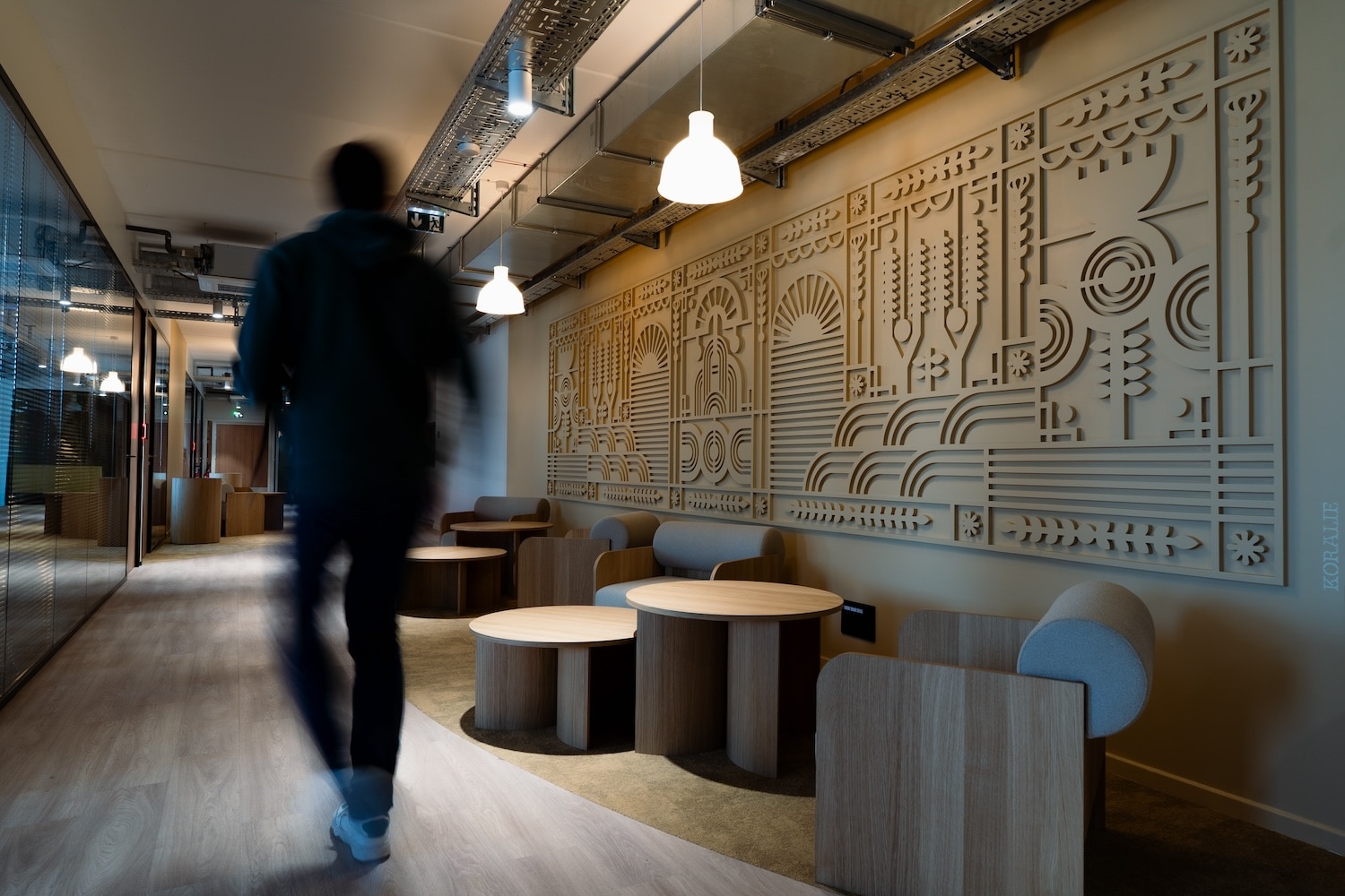 « De la conception du bâtiment nous avons souhaité un lieu qui nous ressemble et en adéquation avec nos valeurs et notre Adn. À la suite de notre rencontre avec Gimmic Design et la convergence avec nos valeurs (environnement, convivialité, qualité, design), c’était une évidence de travailler avec eux » nous explique M. Thomas Pestourie, PDG chez Unikalo.