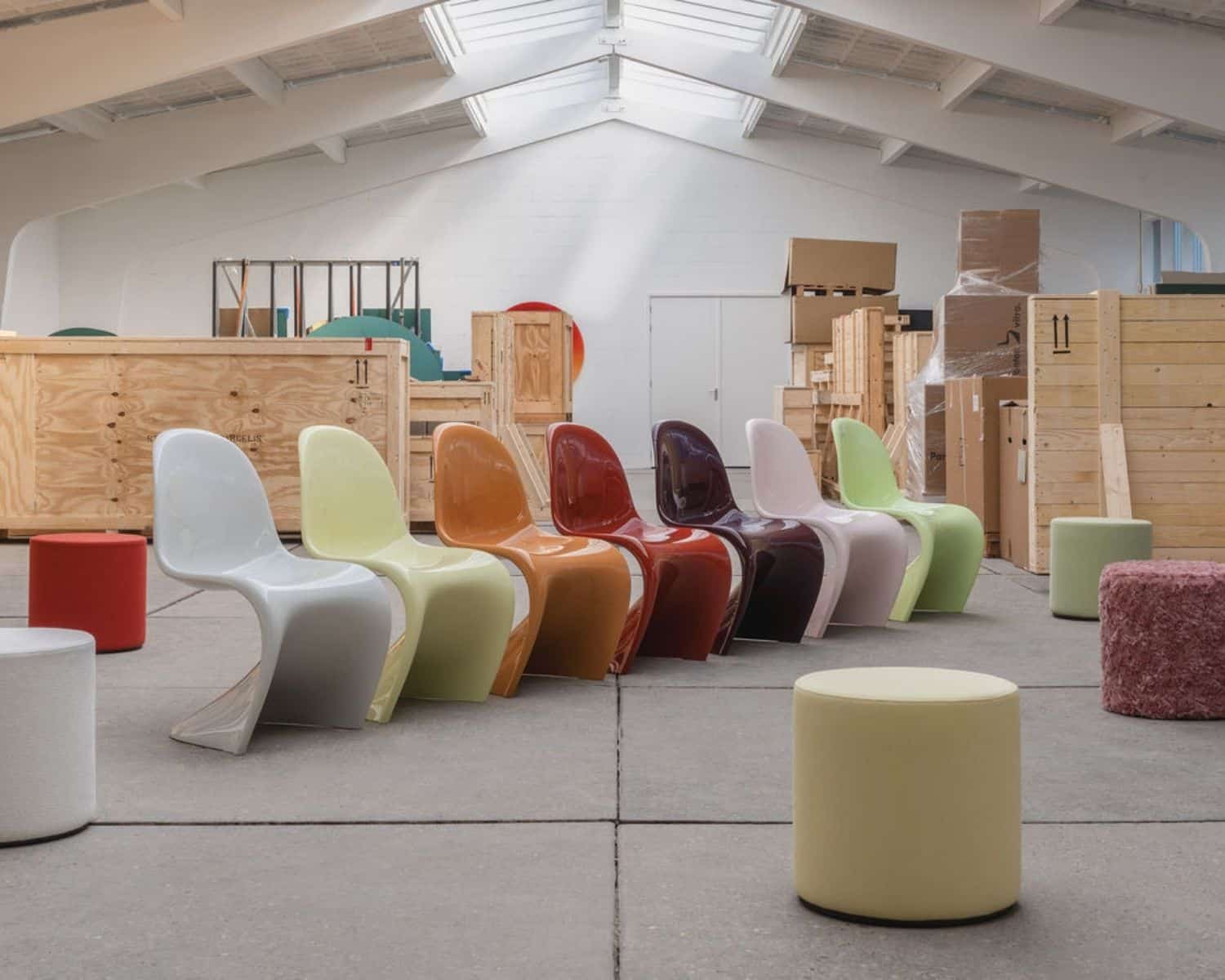 Vitra déploie en 2026 un programme complet en collaboration avec la famille Panton et le Vitra Design Museum. Une édition limitée de la Panton Chair aux couleurs choisies par un vote public international. Une nouvelle exposition au Vitra Schaudepot à Weil am Rhein, intitulée « Verner Panton : Form, Colour, Space », ouverte de mai 2026 à mai 2027, avec une reconstruction à grande échelle du Fantasy Landscape de 1970. L’intégralité de l’archive Panton y est convoquée : meubles, luminaires, textiles, projets architecturaux peu connus.