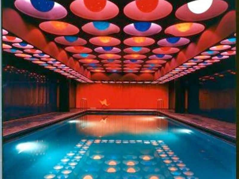 En 1968 puis en 1970, il transforme un bateau amarré sur le Rhin en espace d’exposition immersif. Mousse de polyuréthane, revêtements textiles synthétiques, couleurs saturées : sols, murs et plafonds fusionnent en une continuité organique totale. On n’identifie plus les limites de l’espace. On y est dedans, littéralement. Ces environnements anticipaient les réflexions contemporaines sur les espaces sensoriels, que certains studios explorent aujourd’hui avec des projections numériques et des installations sonores.