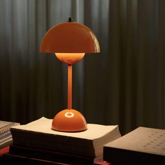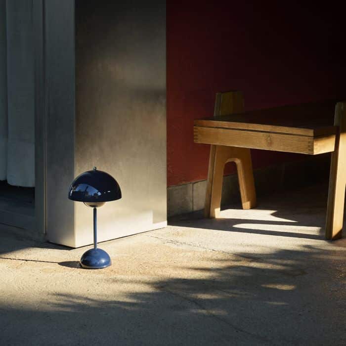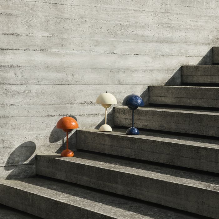 En 2026, pour le centenaire, Louis Poulsen introduit de nouvelles coloris sur la Panthella 160 Portable : un Indigo Blue et un Beige. La lampe s’adapte, mais sa logique formelle reste intacte depuis plus de cinquante ans.