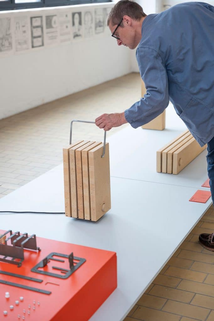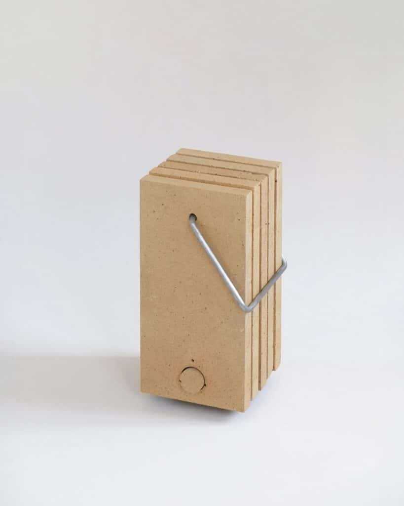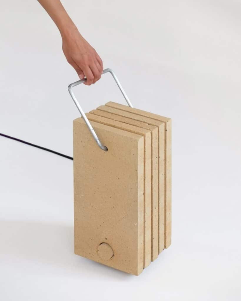 L’élément central du projet est une brique réfractaire, choisie pour ses propriétés d’inertie thermique. Ce matériau, largement utilisé dans les fours industriels ou les poêles de masse, permet de stocker puis de diffuser la chaleur lentement, de manière stable et enveloppante. Le fonctionnement suit un rythme précis : dix minutes de chauffe pour vingt minutes de diffusion passive.