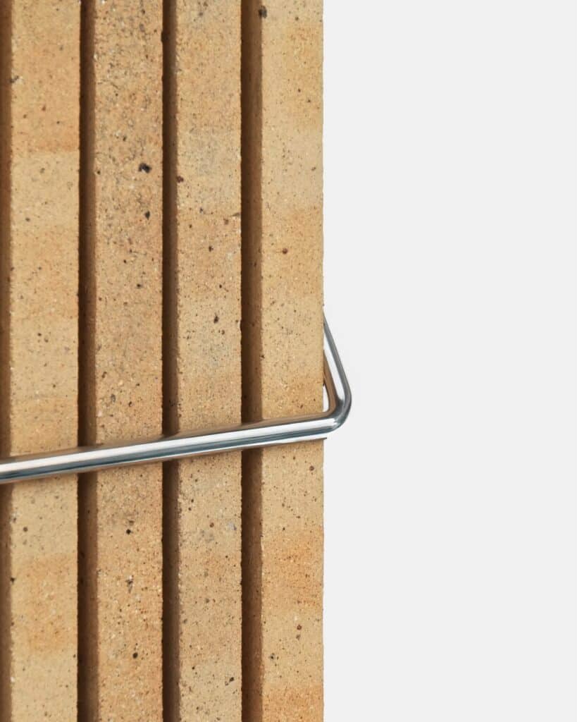 Visuellement, STEA revendique une présence forte. Son allure monolithique, inspirée des radiateurs en fonte anciens, évoque une solidité rassurante. Les briques verticales s’empilent dans une logique architecturale minimale, tandis qu’une poignée tubulaire en acier vient adoucir l’ensemble. Un détail sonore un léger « tic » à l’allumage ravive la mémoire tactile et auditive des chauffages d’autrefois. Le tout repose sur des roulettes unidirectionnelles, permettant un déplacement stable sans sacrifier le poids nécessaire à sa stabilité.