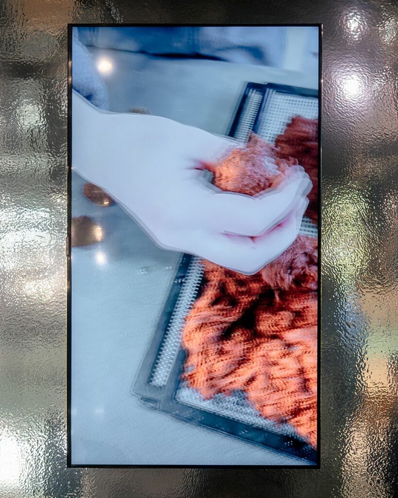 Le salon-exposition Prototype, organisé pour la première fois à l’hôtel de l’industrie, se positionne comme une plateforme dédiée aux savoir-faire innovants. En y présentant leurs recherches, hors-studio participe à la visibilité d’une approche du design qui allie rigueur scientifique, expérimentation matérielle et conscience environnementale. L’exposition offre aux visiteurs l’opportunité de découvrir les différentes étapes du processus : de la matière première brute aux échantillons finalisés, en passant par les protocoles d’extraction du collagène.