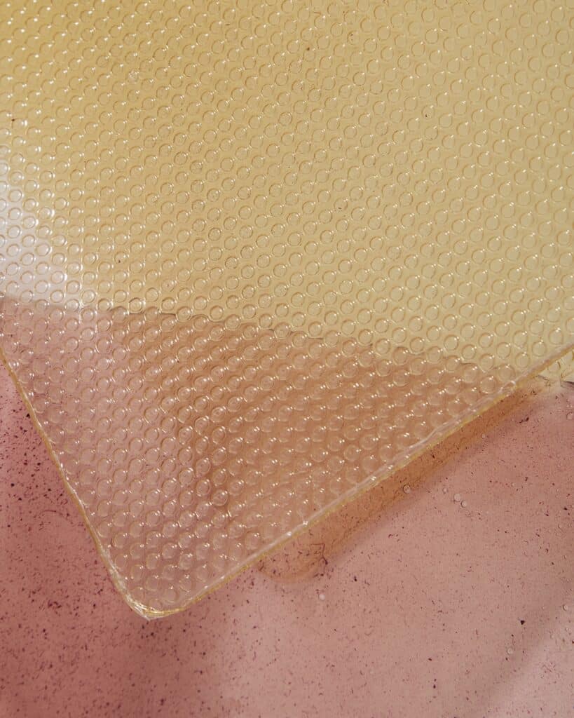Si les applications biomédicales du collagène de byssus restent à confirmer, les potentialités du matériau dans le secteur du design apparaissent déjà prometteuses. Les échantillons présentés suggèrent des usages variés : revêtements muraux, éléments de mobilier, objets décoratifs ou luminaires. La compatibilité du byssus avec des techniques artisanales comme la teinture végétale ou la sérigraphie facilite son intégration dans des processus de fabrication à échelle humaine, favorisant une production locale et maîtrisée.