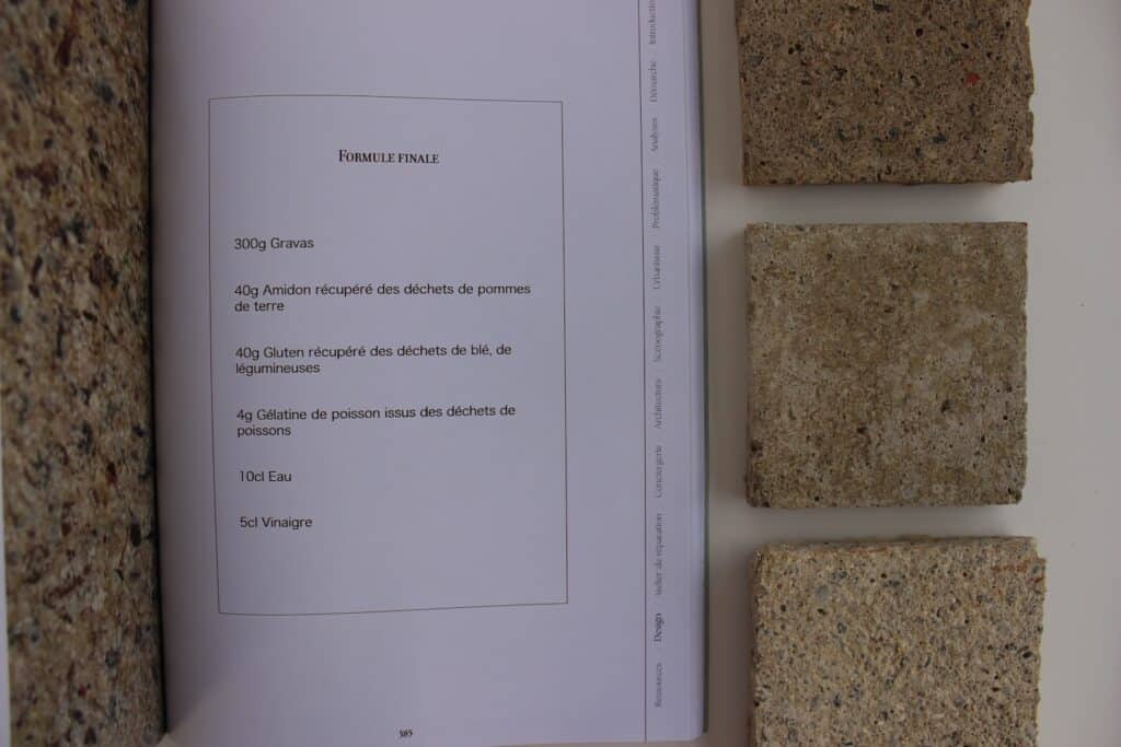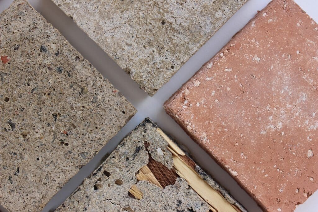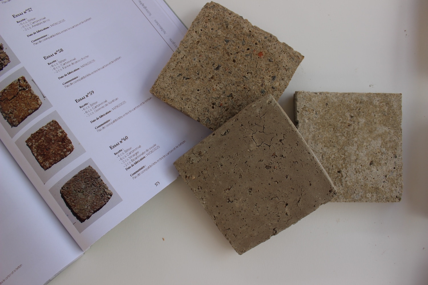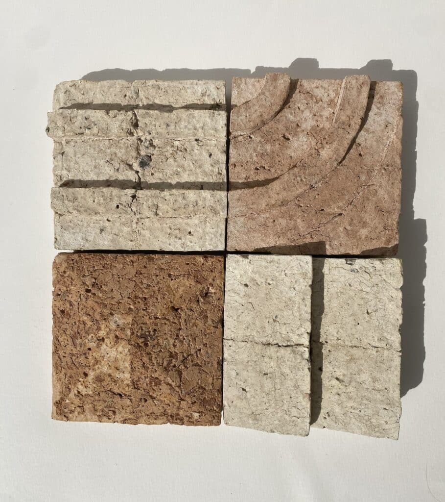 Mais l’innovation ne s’arrête pas à la matière visible. Le cœur du projet réside aussi dans les liants utilisés : exit le ciment traditionnel, place à des alternatives naturelles et biodégradables, issues parfois de déchets alimentaires. Myra Deson teste ainsi l’amidon de riz, la pâte de carton, la gomme de xanthane, jusqu’à remplacer la fécule de maïs par une poudre obtenue à partir de déchets de pommes de terre locales. Une démarche qui interroge autant la performance que l’impact environnemental de nos matériaux de construction.