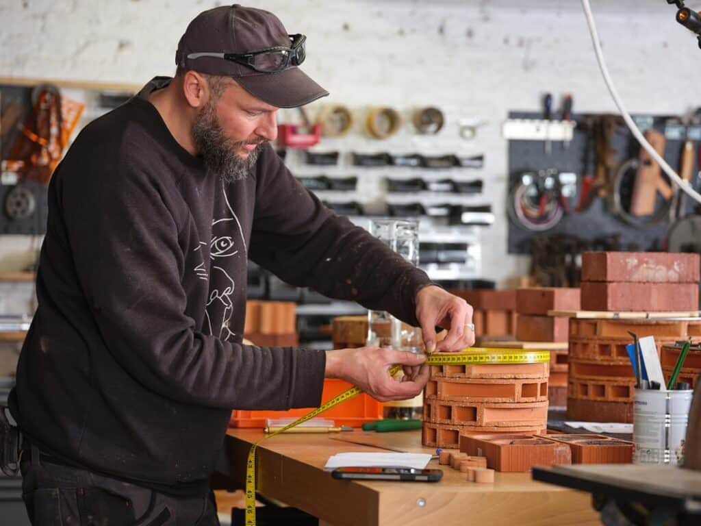 Parmi les créateurs contemporains qui explorent les ressources oubliées de l’architecture et du design, Aurelien Veyrat se démarque par une obnubilation pour la brique de construction. Designer formé au travail du bois puis passé par l’expérimentation plastique, il a fait de la brique son matériau de prédilection.