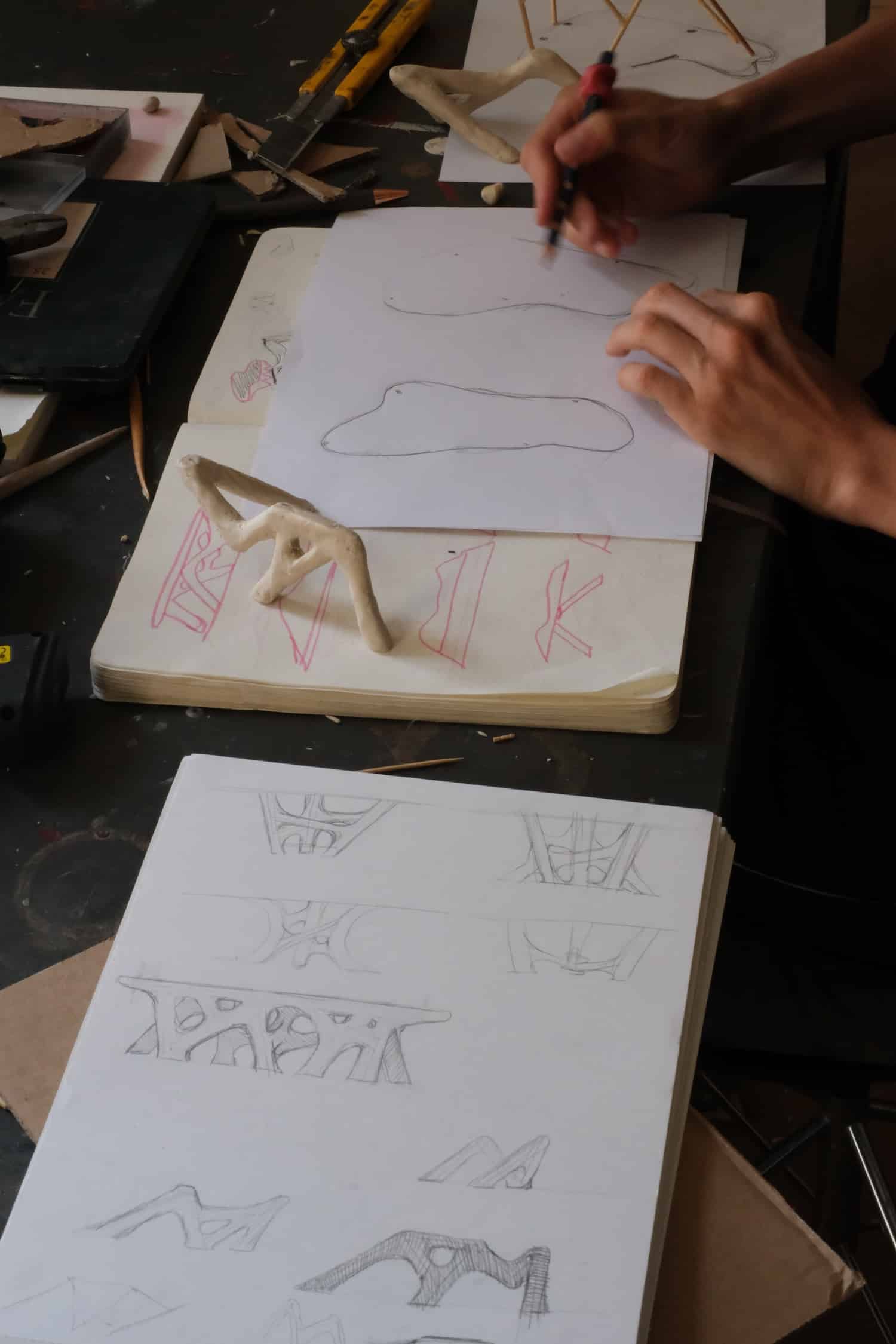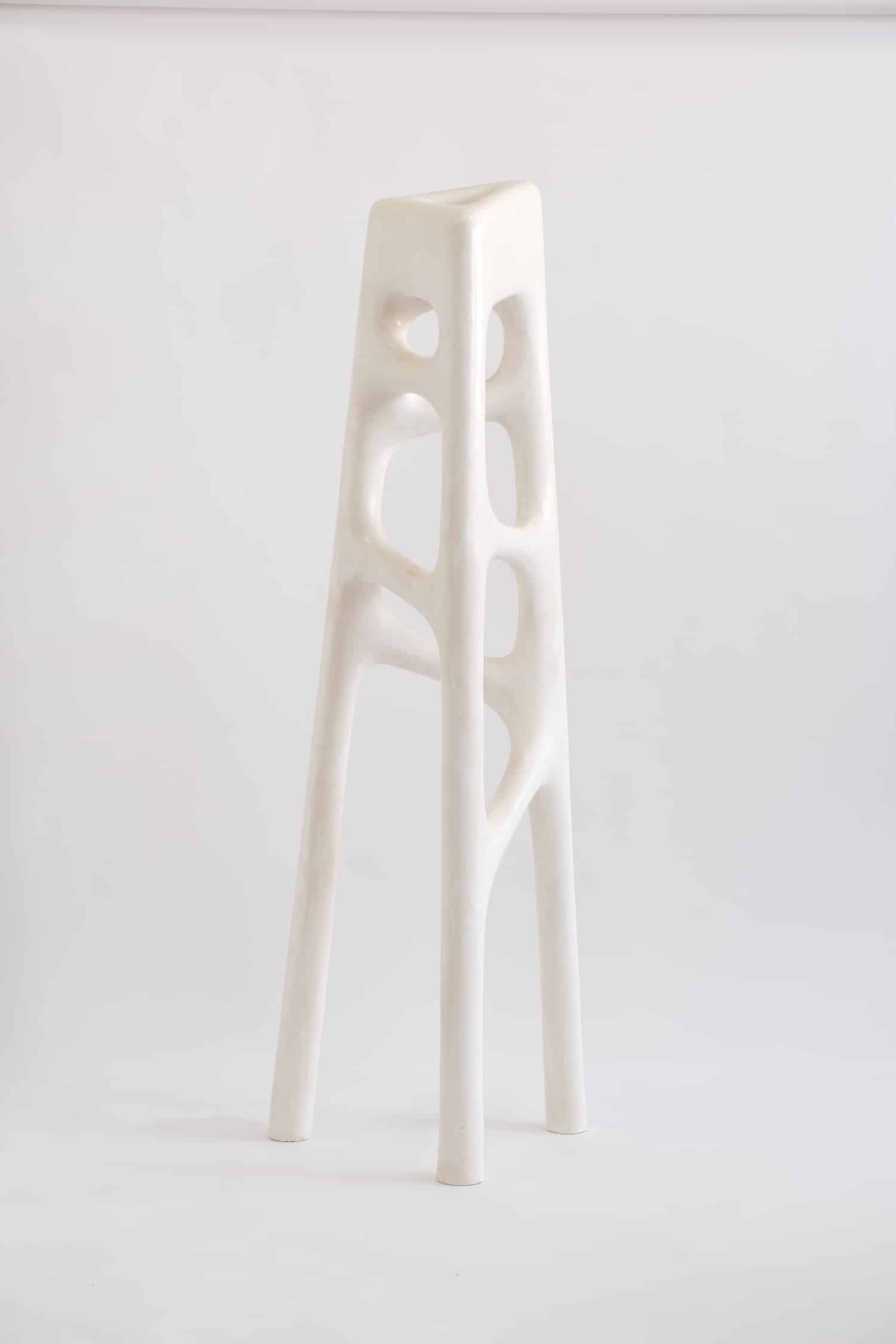 Thomas Lelouch, diplômé des Arts décoratifs de Paris en 2015, a co-fondé le studio Atelier Craft la même année, collaborant pendant huit ans avec des marques issues de la mode, du luxe et du sport. Sa formation plurielle en artisanat d’art plâtre, bronze lui permet d’envisager chaque pièce à la fois comme un objet technique et comme une sculpture. C’est cette double lecture qui donne à White Noise sa crédibilité : les pièces ne font pas semblant d’être des sculptures, elles l’assument tout en conservant une pleine fonctionnalité.