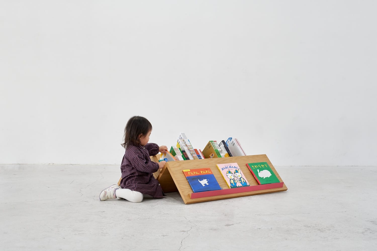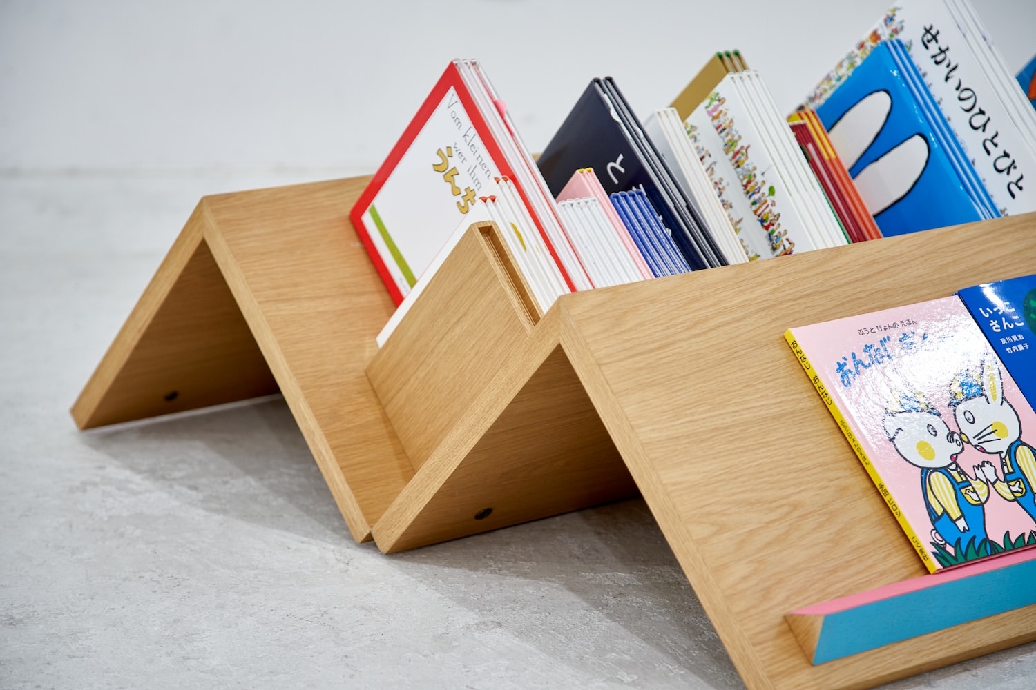 La vraie proposition se joue dans l’angle de vue. Sur un rayonnage vertical, la taille du lecteur décide du rayon accessible. Les adultes prennent les couvertures de face, les enfants lèvent la tête ou demandent de l’aide. Avec ses plans inclinés, Tsuranari modifie cette équation. Enfants comme adultes doivent s’accroupir, s’approcher, passer la main sur le bois pour faire glisser un album.