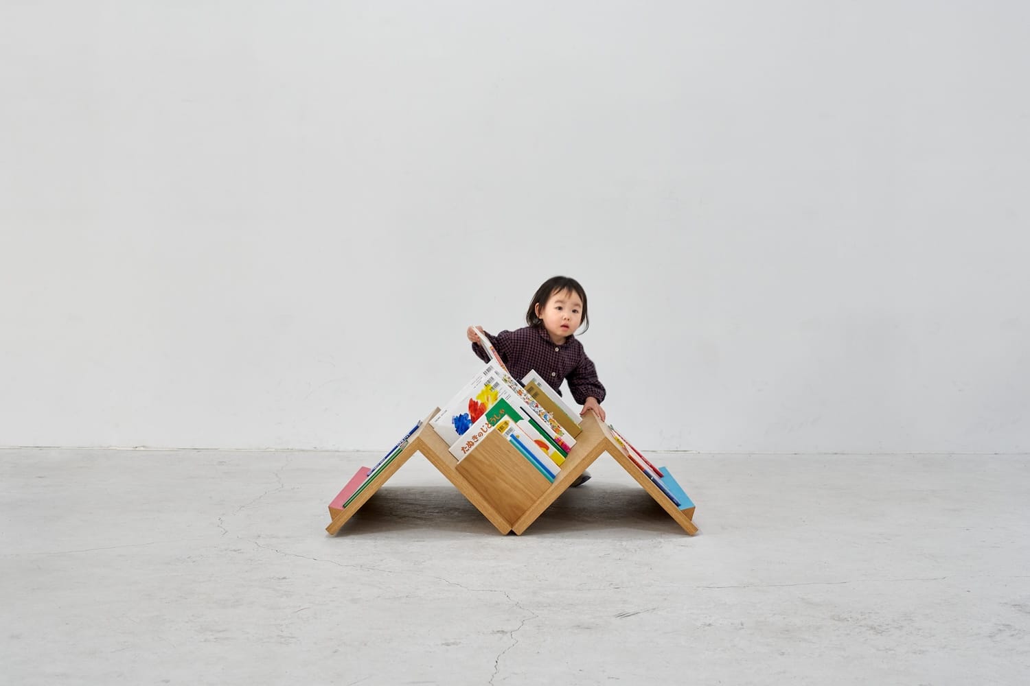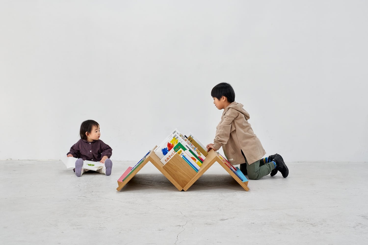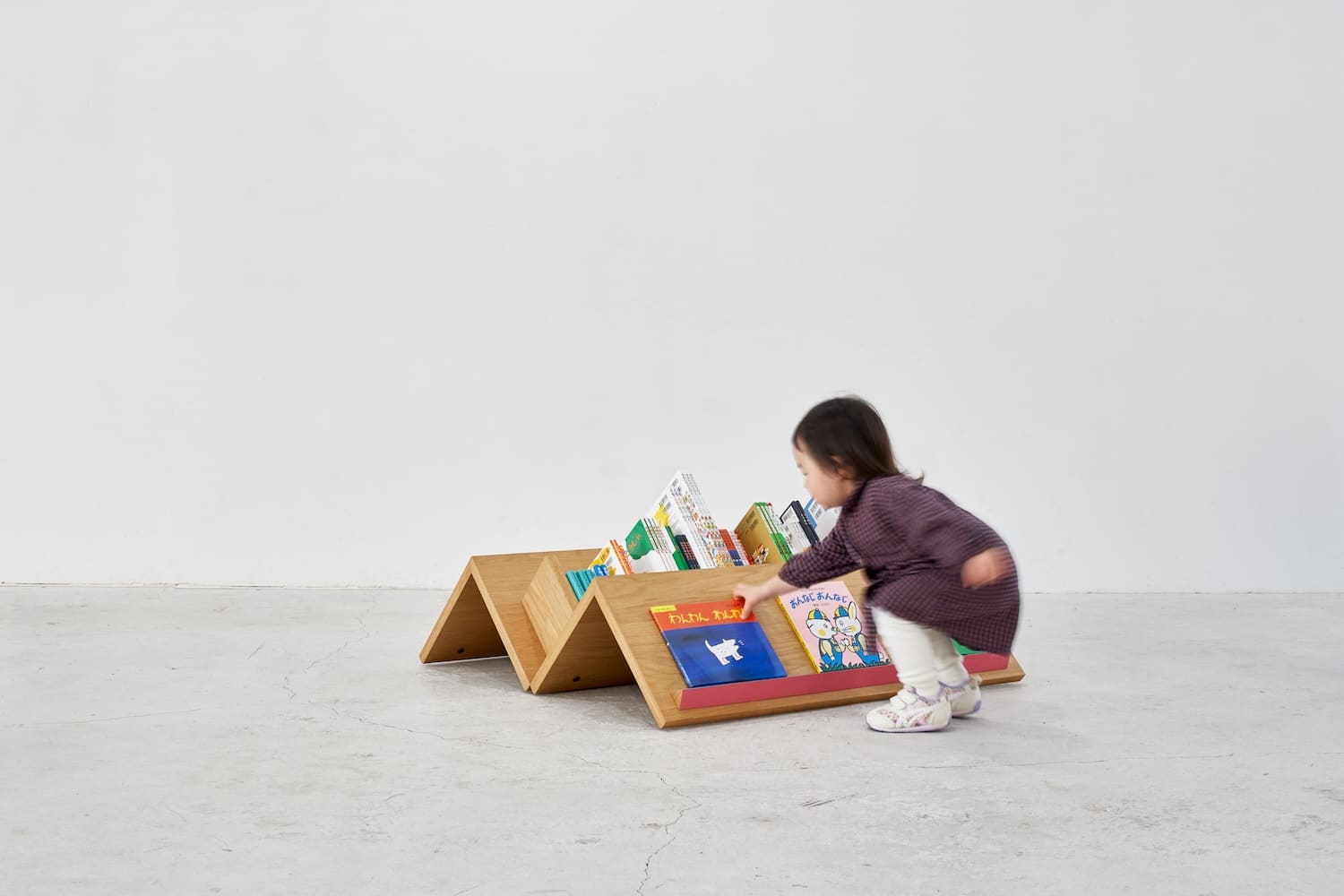 Tsuranari tient dans peu d’éléments, quelques modules en forme de montagne, un bois sobrement travaillé, un principe d’accessibilité qui retire au meuble sa petite autorité habituelle. Le lecteur n’a plus besoin d’être grand pour trouver son livre, il lui suffit de s’accroupir au même niveau que les autres. Pour une librairie ambulante qui se déplace à la rencontre des enfants, le message est cohérent jusque dans la structure.