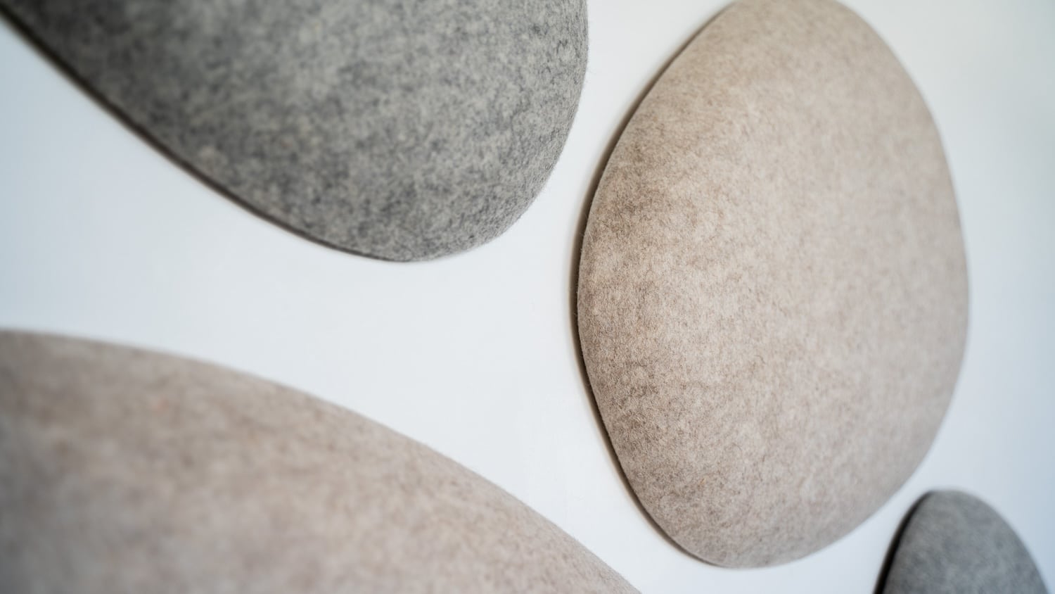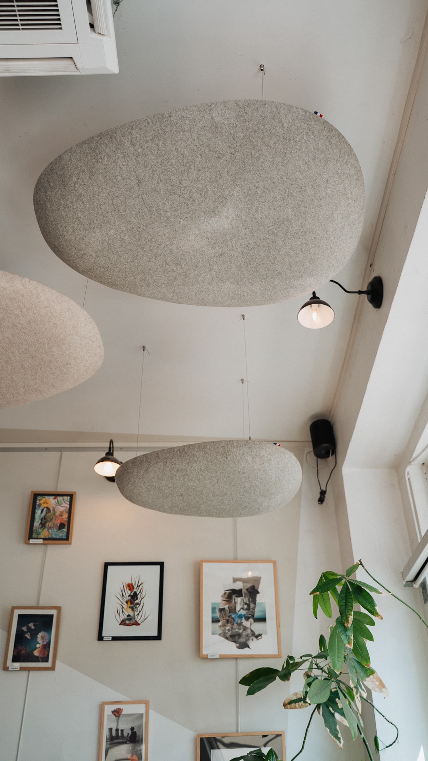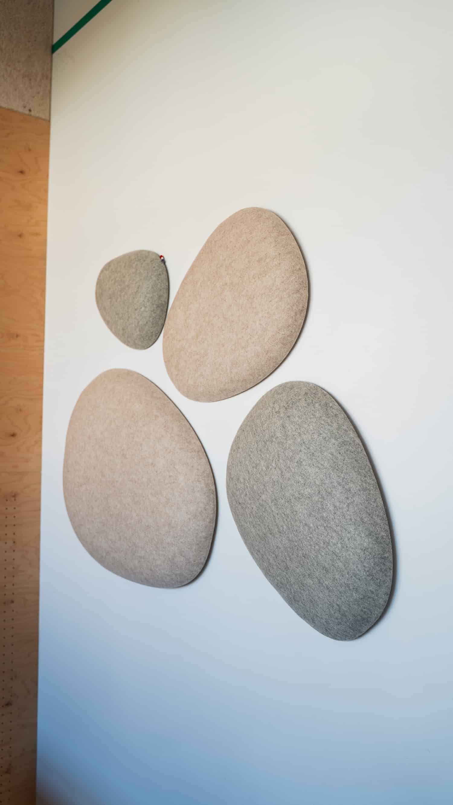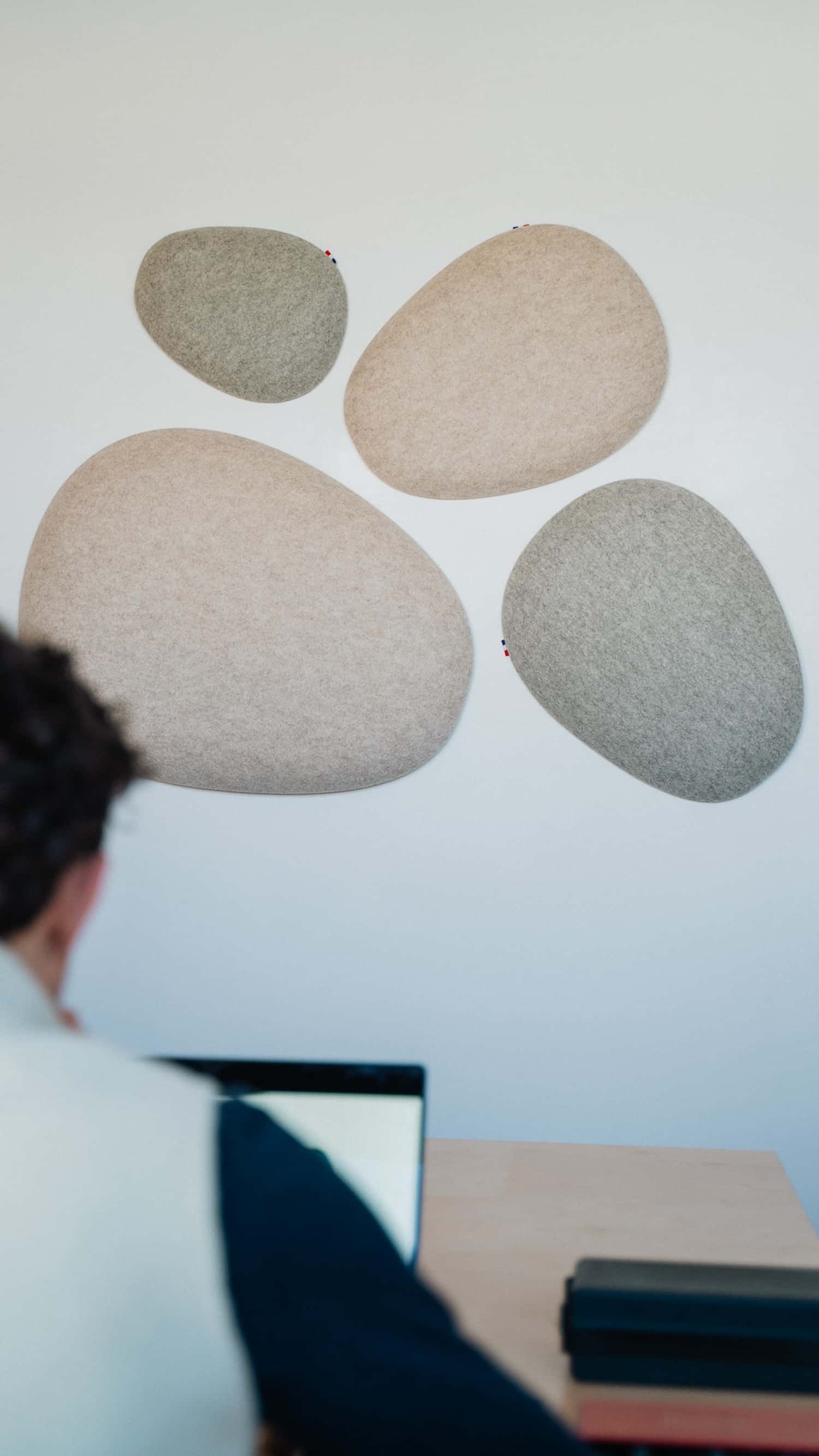 Les premières installations le montrent : des galets suspendus dans un café du 7e arrondissement de Lyon, des nuages dans une crèche du 2e, des galets muraux dans des espaces de coworking. Les formes rondes et biomorphiques s’intègrent sans effort dans des environnements contemporains. Et si l’on veut aller plus loin, Moumoute propose aussi des réalisations sur mesure : ovales, rectangles, boules acoustiques, les formes peuvent être adaptées à chaque projet.