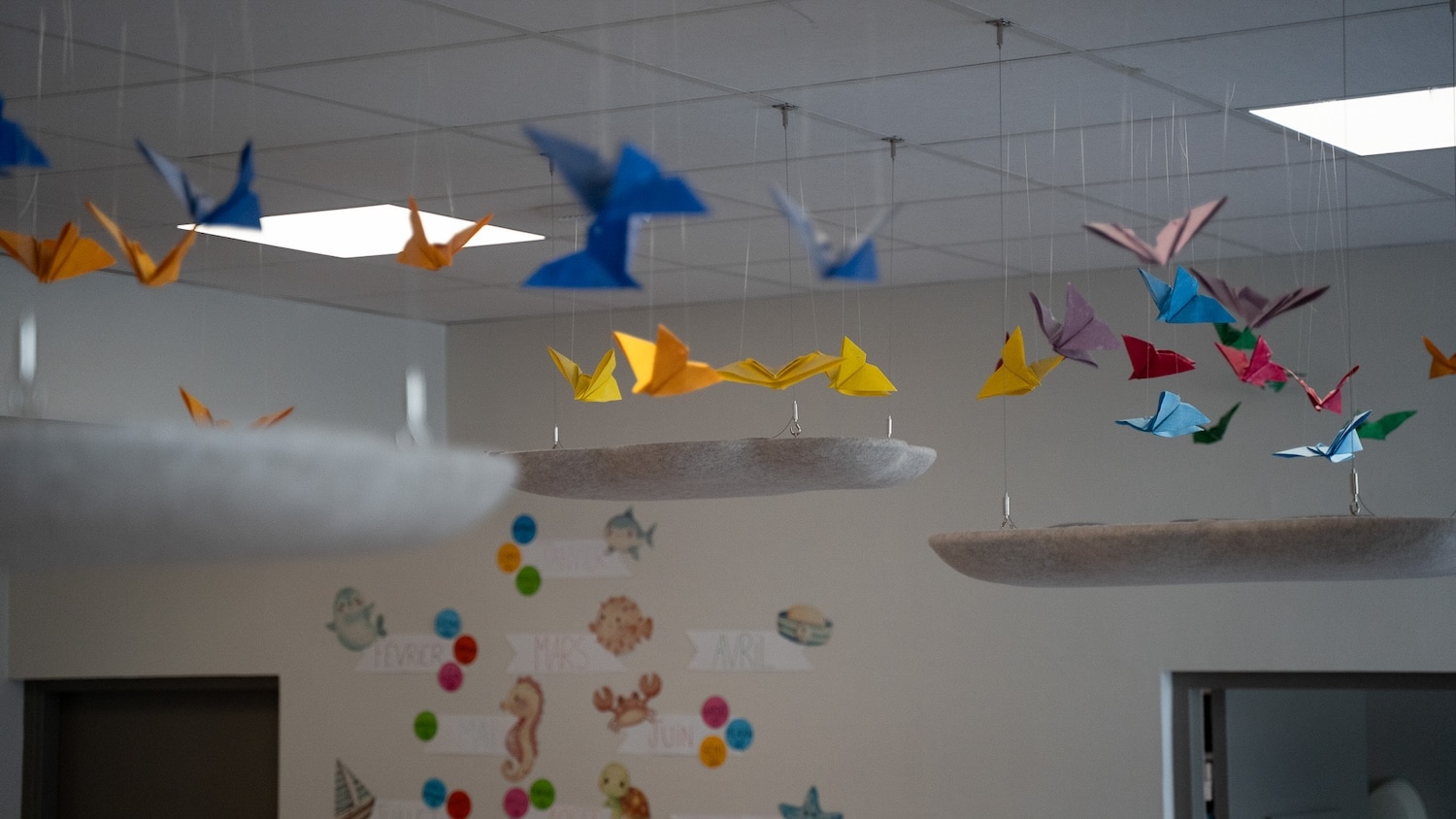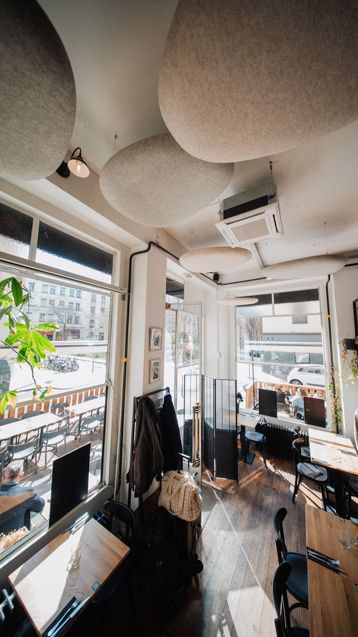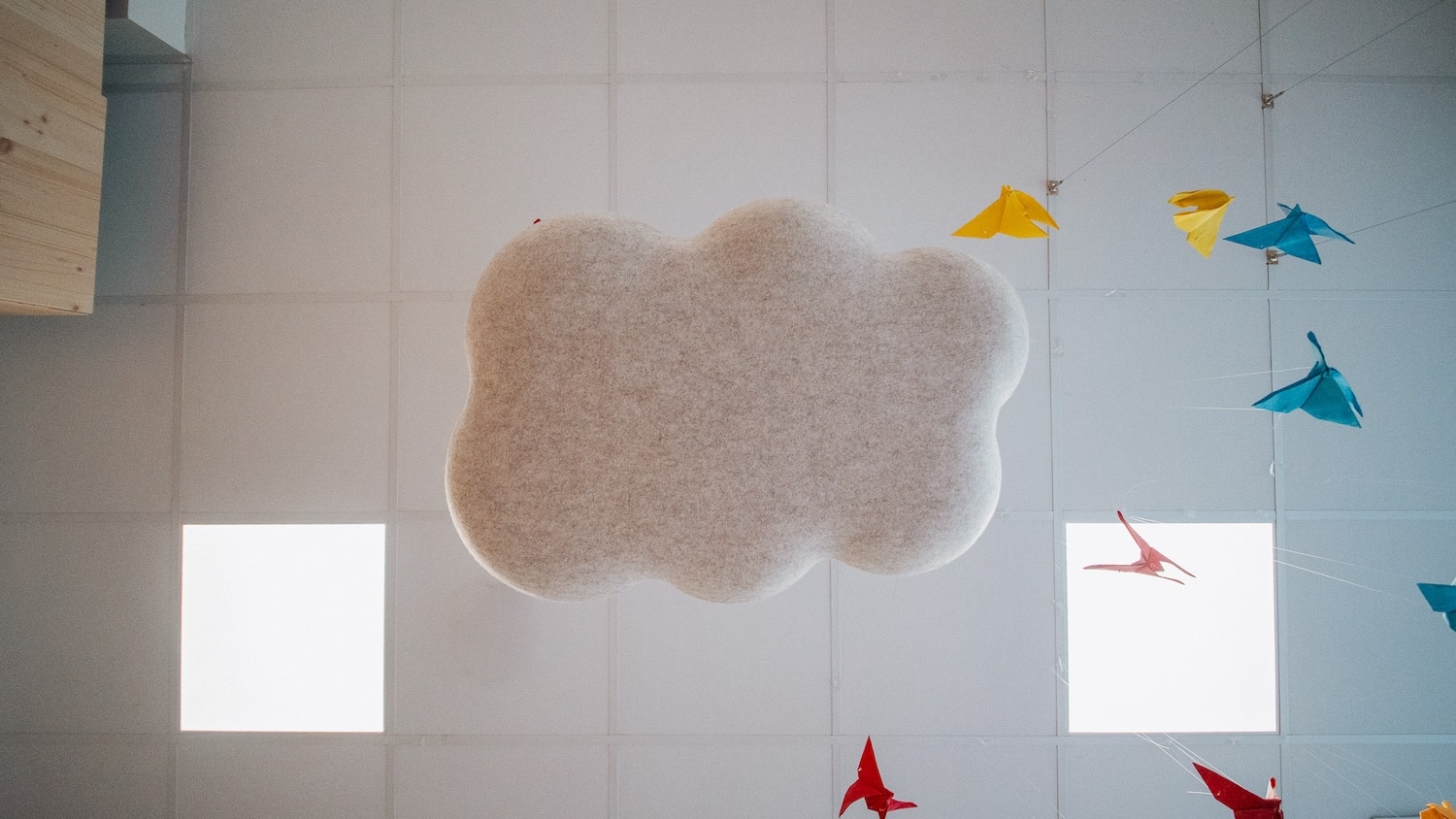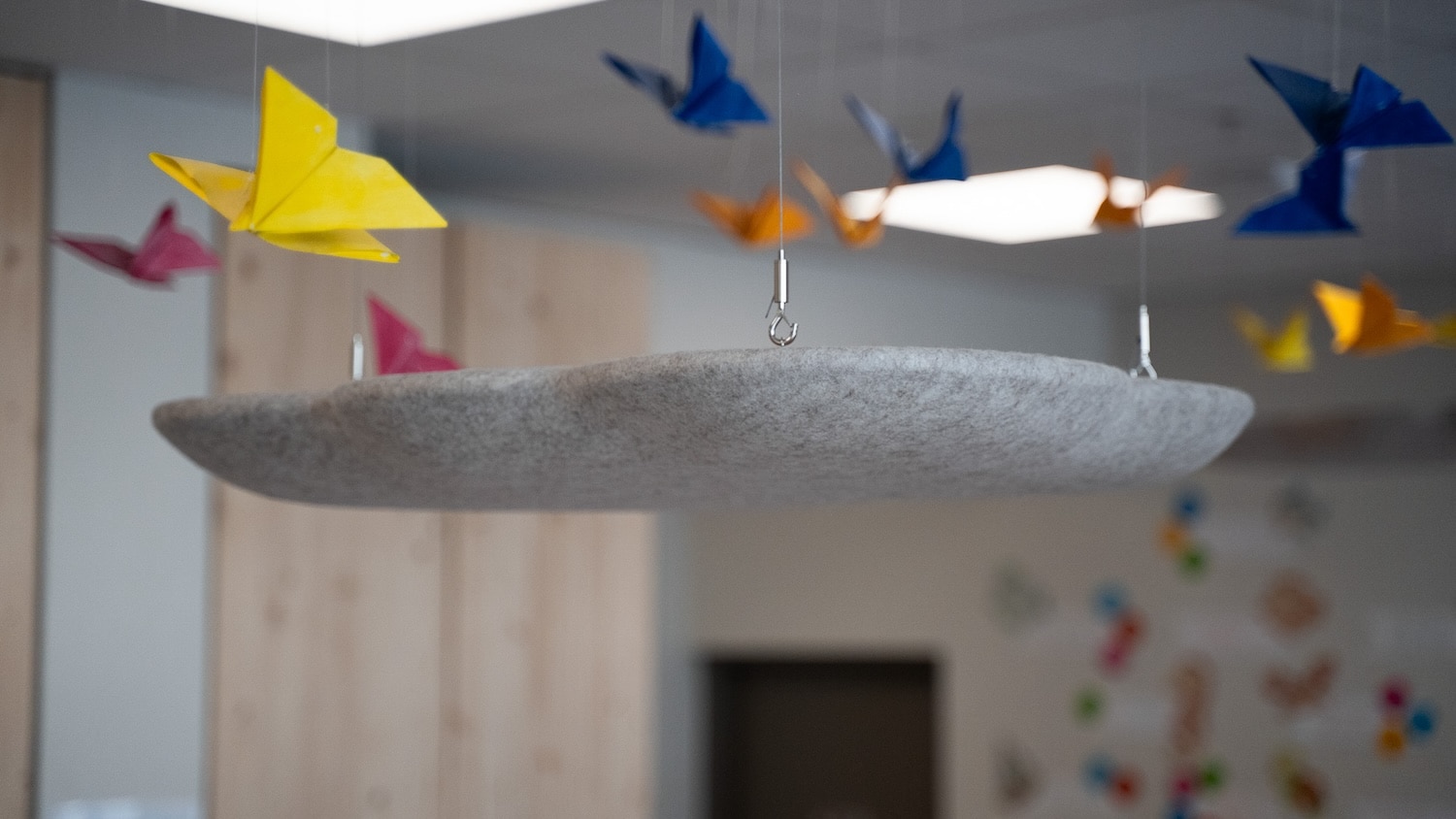 Les premières installations le montrent : des galets suspendus dans un café du 7e arrondissement de Lyon, des nuages dans une crèche du 2e, des galets muraux dans des espaces de coworking. Les formes rondes et biomorphiques s’intègrent sans effort dans des environnements contemporains. Et si l’on veut aller plus loin, Moumoute propose aussi des réalisations sur mesure : ovales, rectangles, boules acoustiques, les formes peuvent être adaptées à chaque projet.