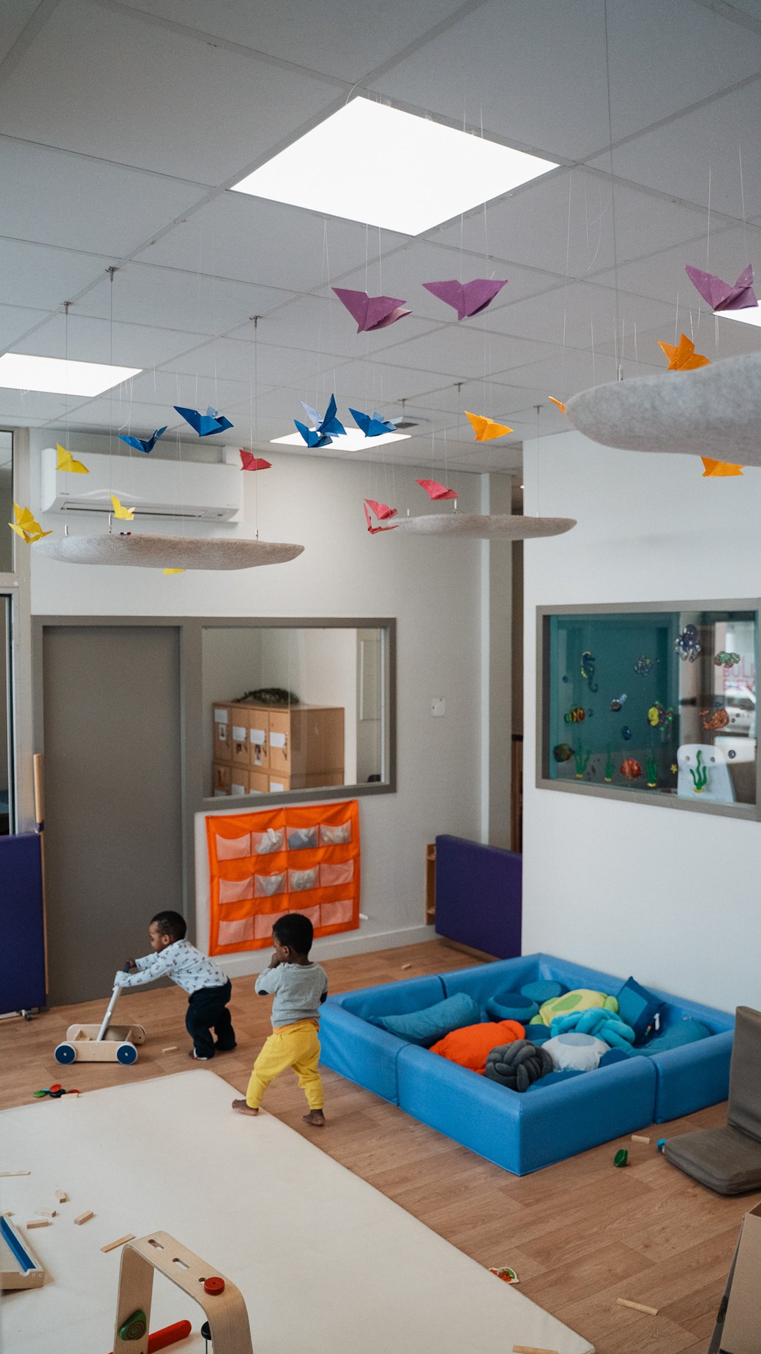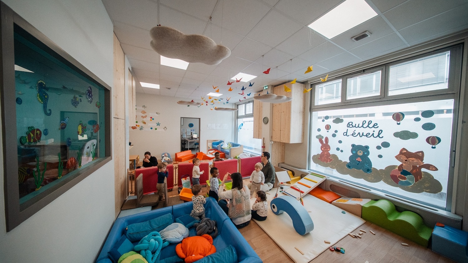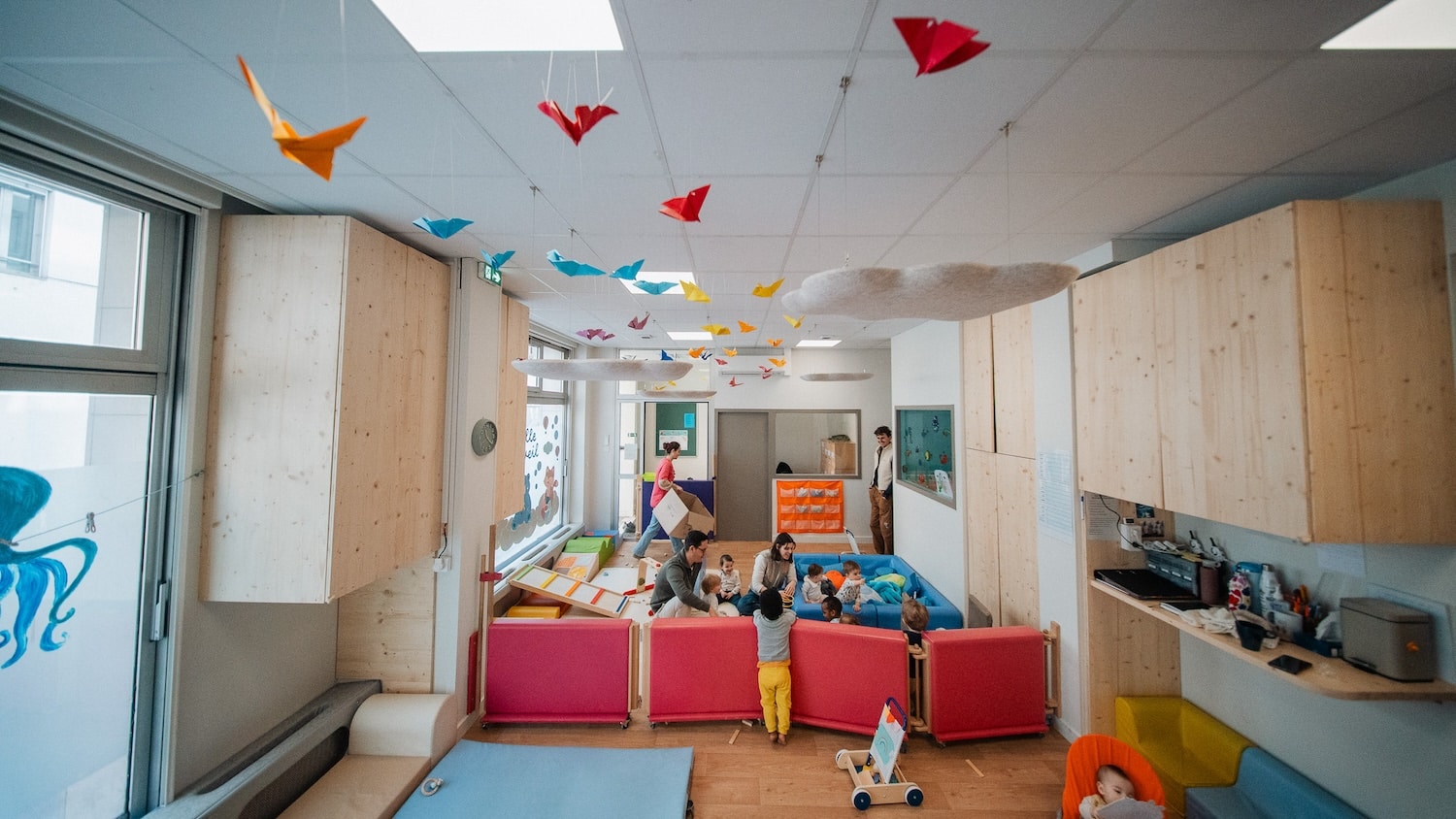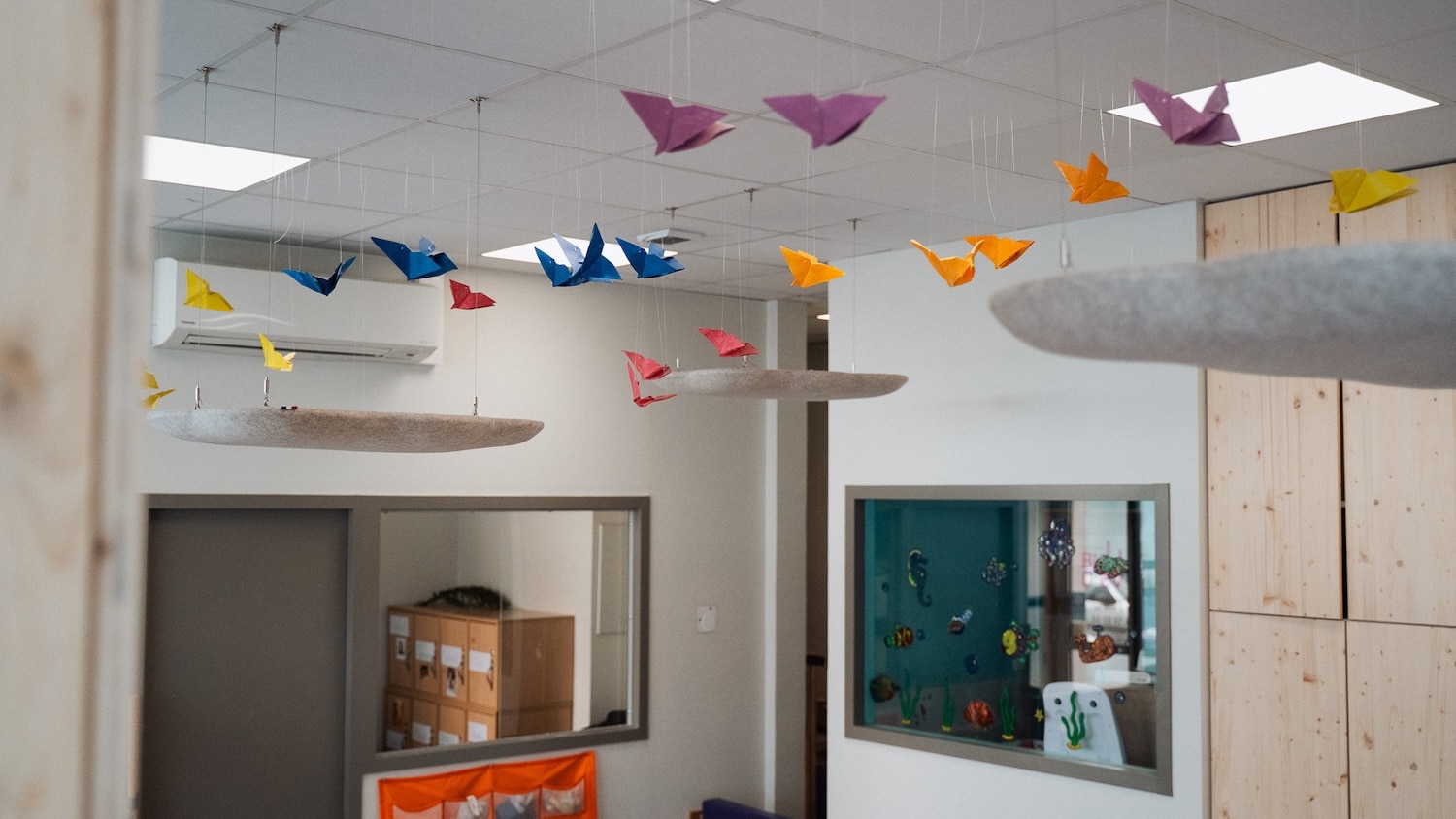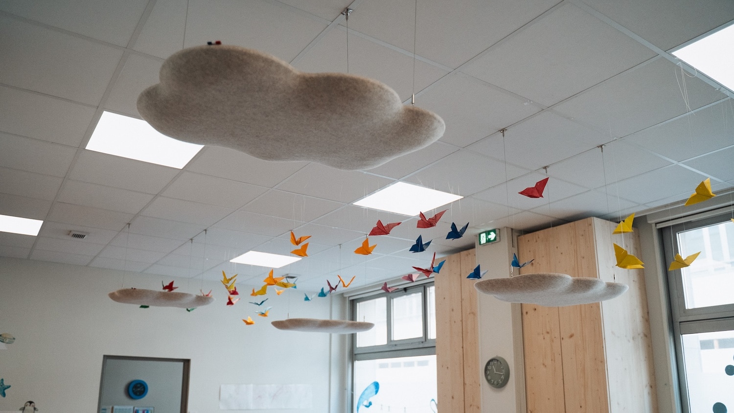 Les premières installations le montrent : des galets suspendus dans un café du 7e arrondissement de Lyon, des nuages dans une crèche du 2e, des galets muraux dans des espaces de coworking. Les formes rondes et biomorphiques s’intègrent sans effort dans des environnements contemporains. Et si l’on veut aller plus loin, Moumoute propose aussi des réalisations sur mesure : ovales, rectangles, boules acoustiques, les formes peuvent être adaptées à chaque projet.