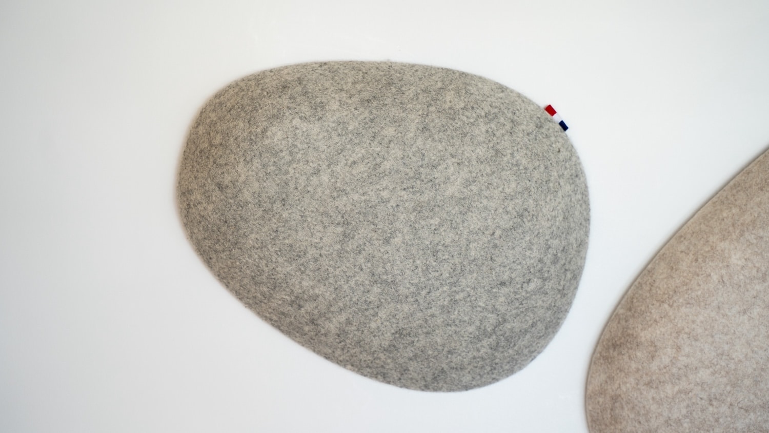 Chaque panneau Moumoute repose sur une armature en bois de peuplier certifié FSC, recouverte d’un rembourrage en laine des Monts du Lyonnais, puis enveloppée d’un feutre 100 % laine. Une couche de coton upcyclé vient compléter la composition côté fixation. La palette chromatique reste volontairement sobre : beige perle et gris chiné, deux teintes qui se fondent dans la plupart des environnements sans chercher à attirer l’attention sur elles-mêmes.