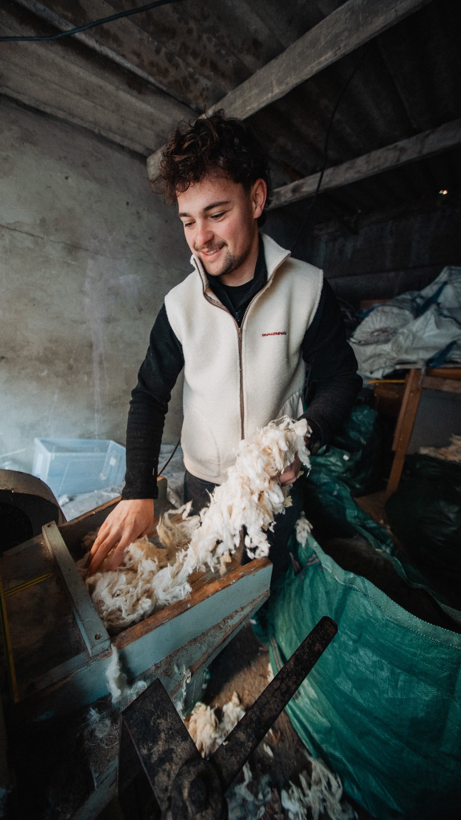 La laine utilisée par Moumoute est collectée en France, lavée dans la dernière laverie de laine encore active sur le territoire, puis assemblée dans un atelier lyonnais au sein d’un ESAT (foyer d’insertion professionnel). Cette géographie courte n’est pas qu’une posture : elle génère un revenu complémentaire pour des éleveurs en difficulté économique et maintient des savoir-faire locaux sous tension.