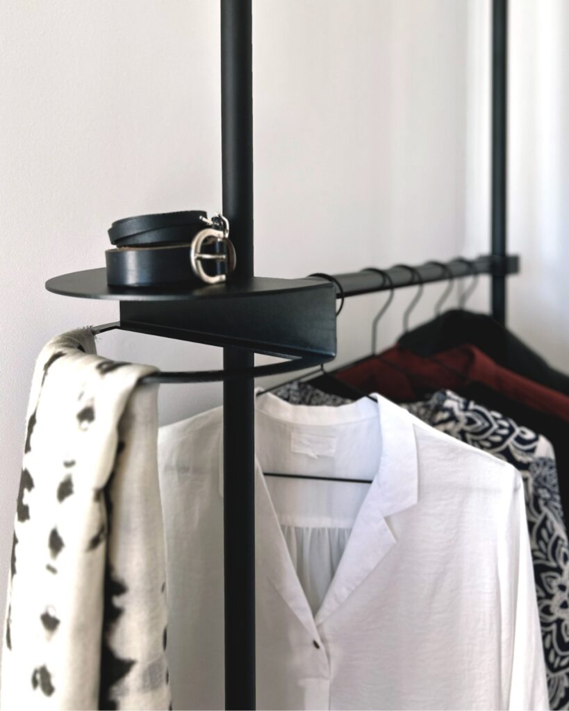 HILO repose sur une idée à la fois simple et ingénieuse : des barres modulaires réglables en hauteur (de 1 m à 2,70 m), fixables sans perçage ni outillage grâce à un système breveté de vérin à gaz et de clés de verrouillage.
