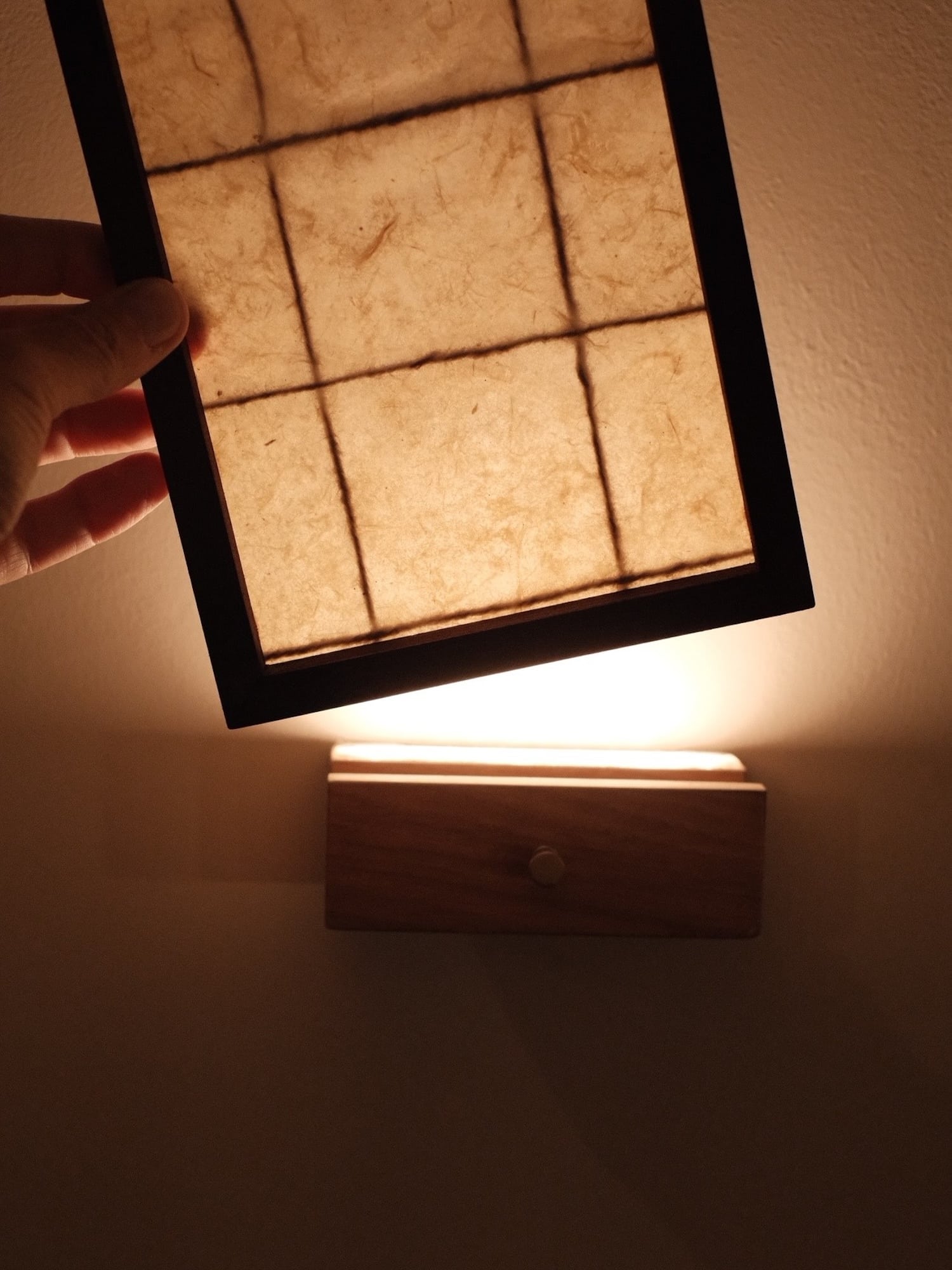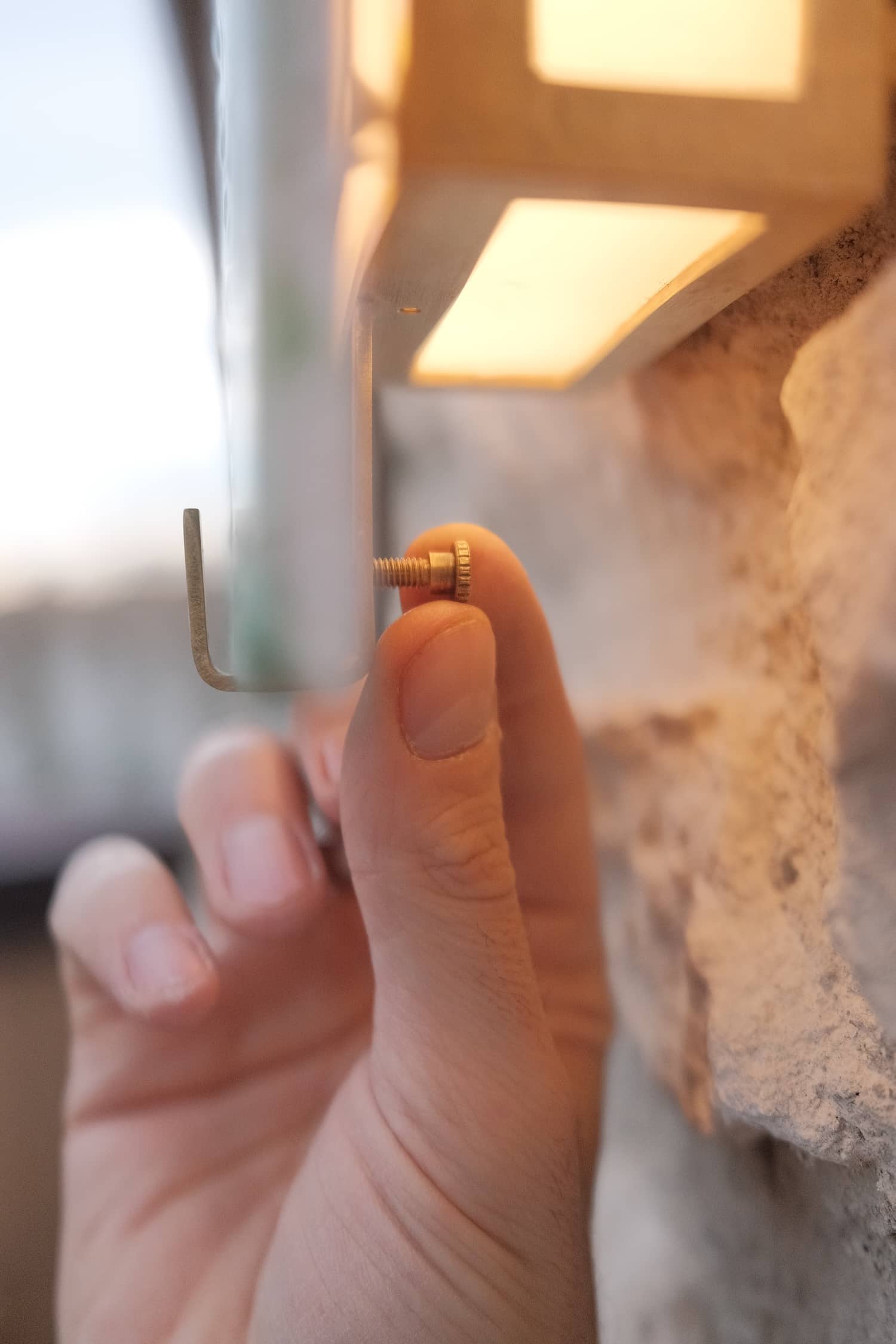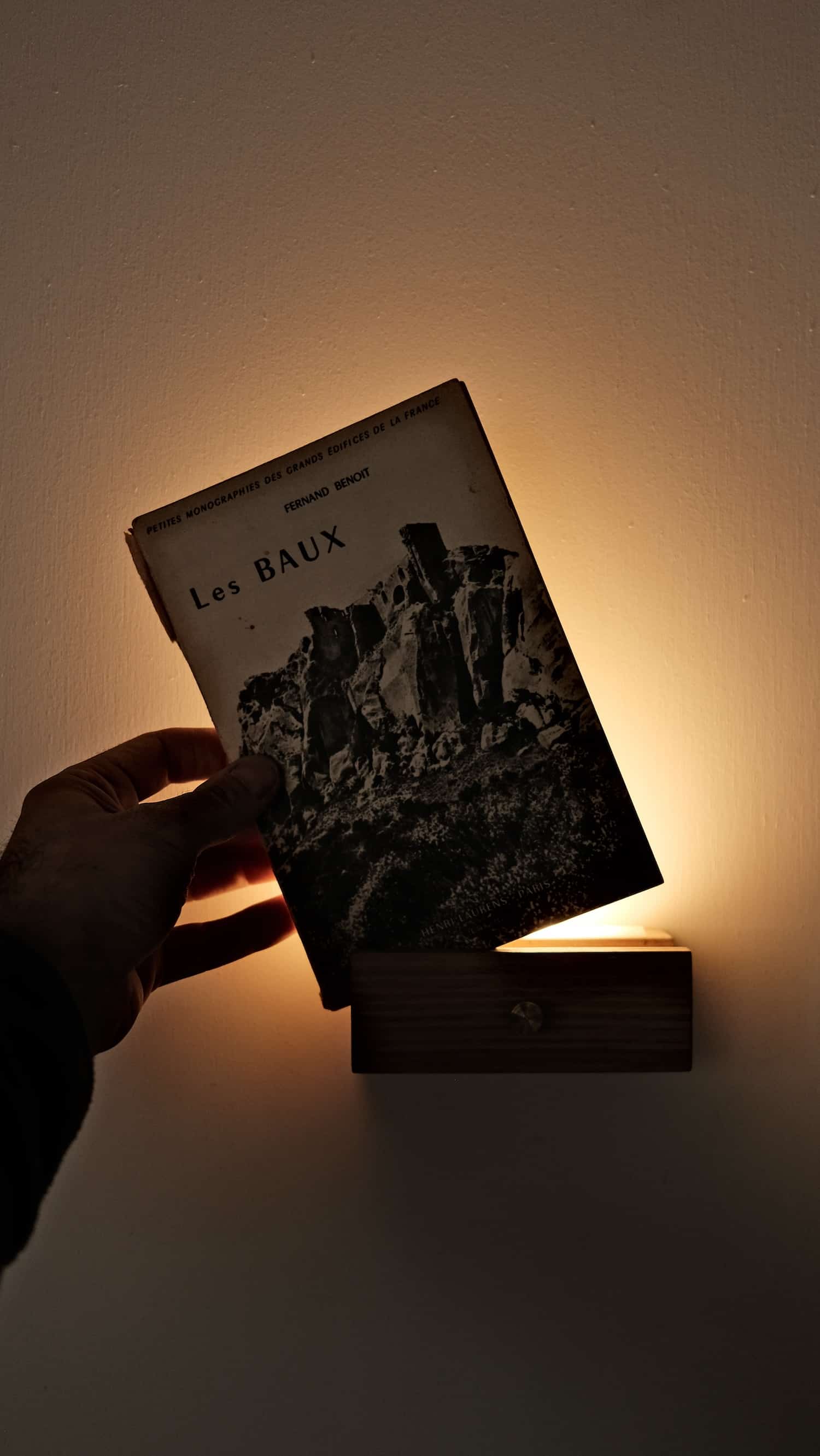 Dans le même esprit, l’applique Arthur, en chêne massif. Elle a été pensée pour mettre en valeur un objet, comme un livre ou un dessin, ou encore un matériau. On place l’objet et on serre une vis pour fixer.