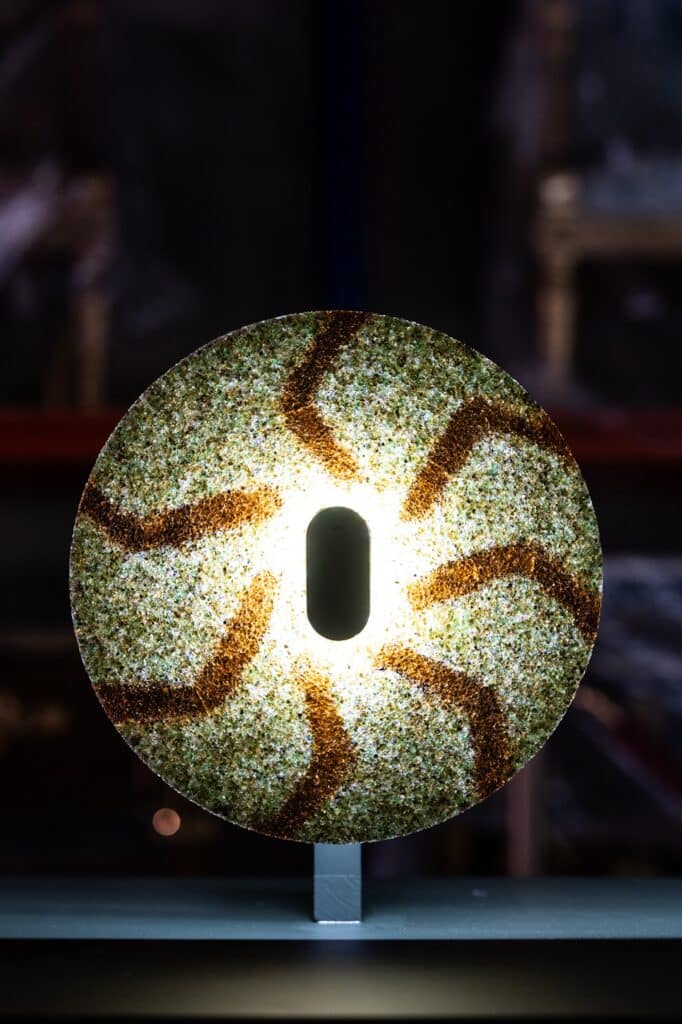 La lampe Cive prolonge cette exploration en transformant ces mêmes résidus en un objet d’usage concret, où la matière raconte sa genèse : brut mais raffiné, translucide ou texturé, elle invite à repenser le design des luminaires en s’appuyant sur un matériau à la fois technologique et porteur d’histoire.