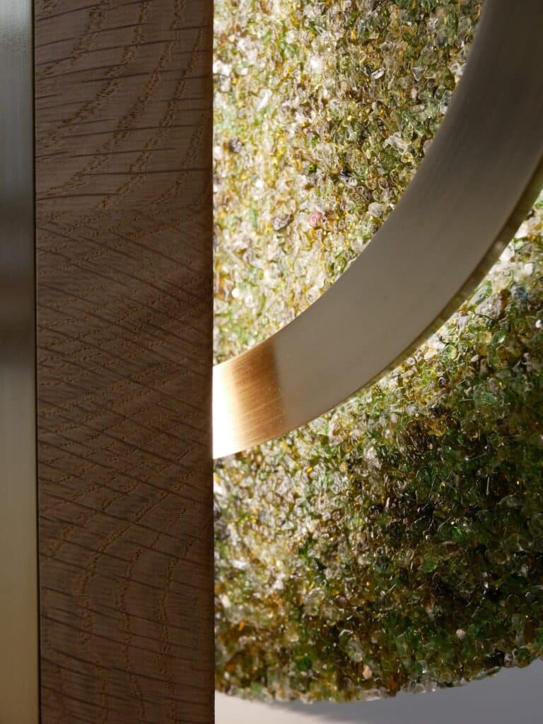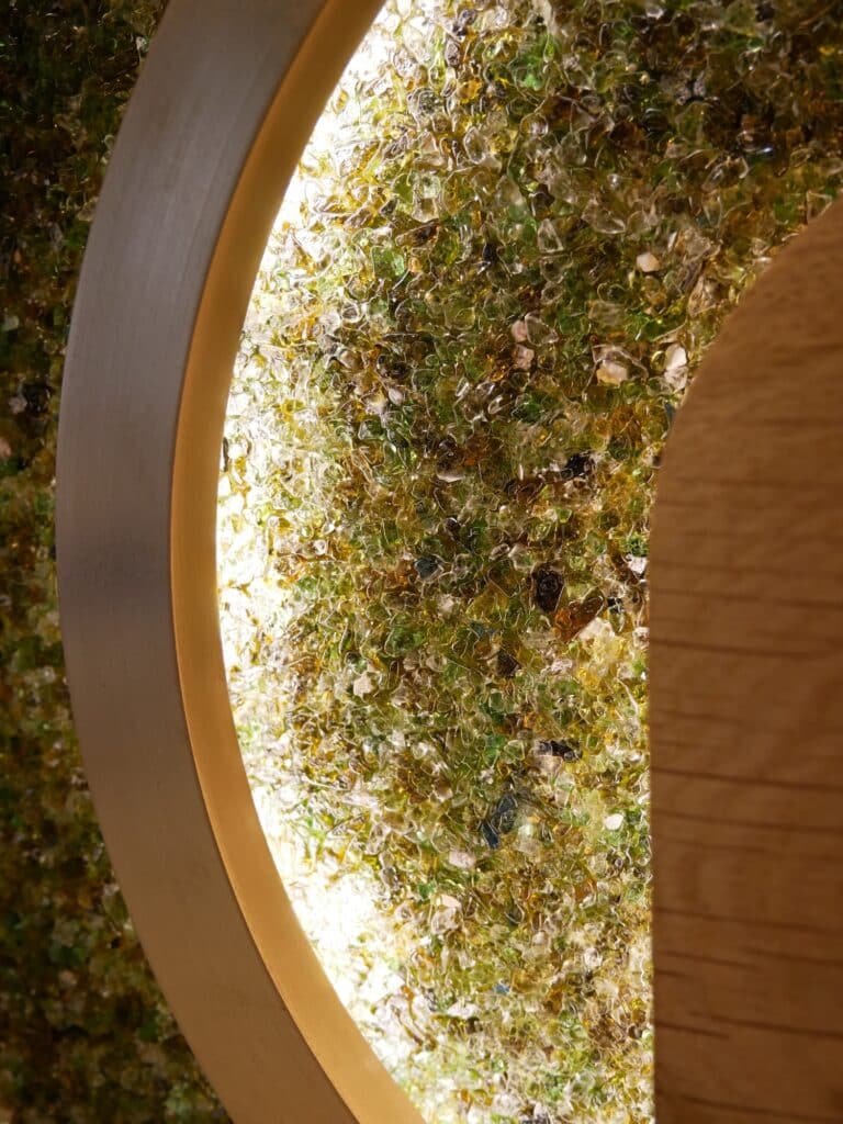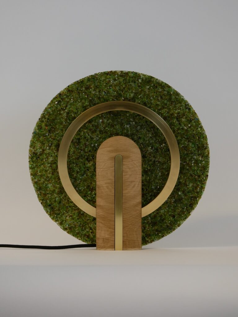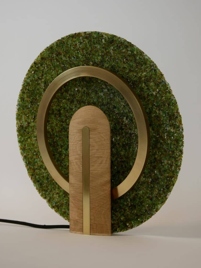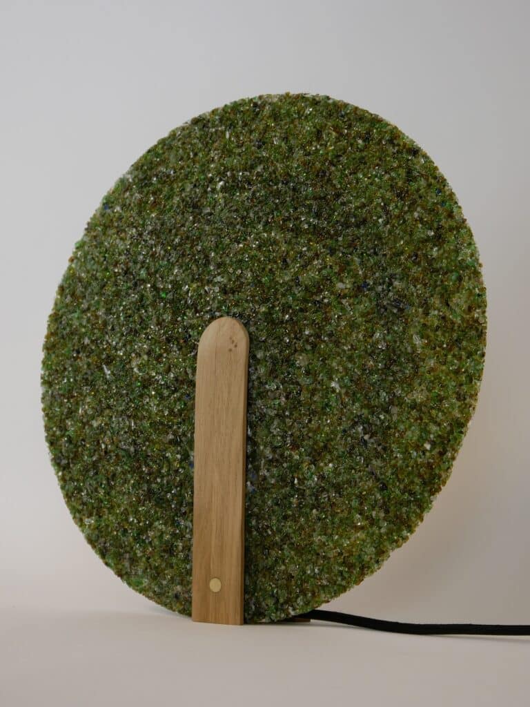 La lampe à poser Cive s’inscrit dans cette même démarche : elle est réalisée uniquement à partir de déchets de verre, une fraction de matière généralement considérée comme ingérable dans les circuits classiques de recyclage.