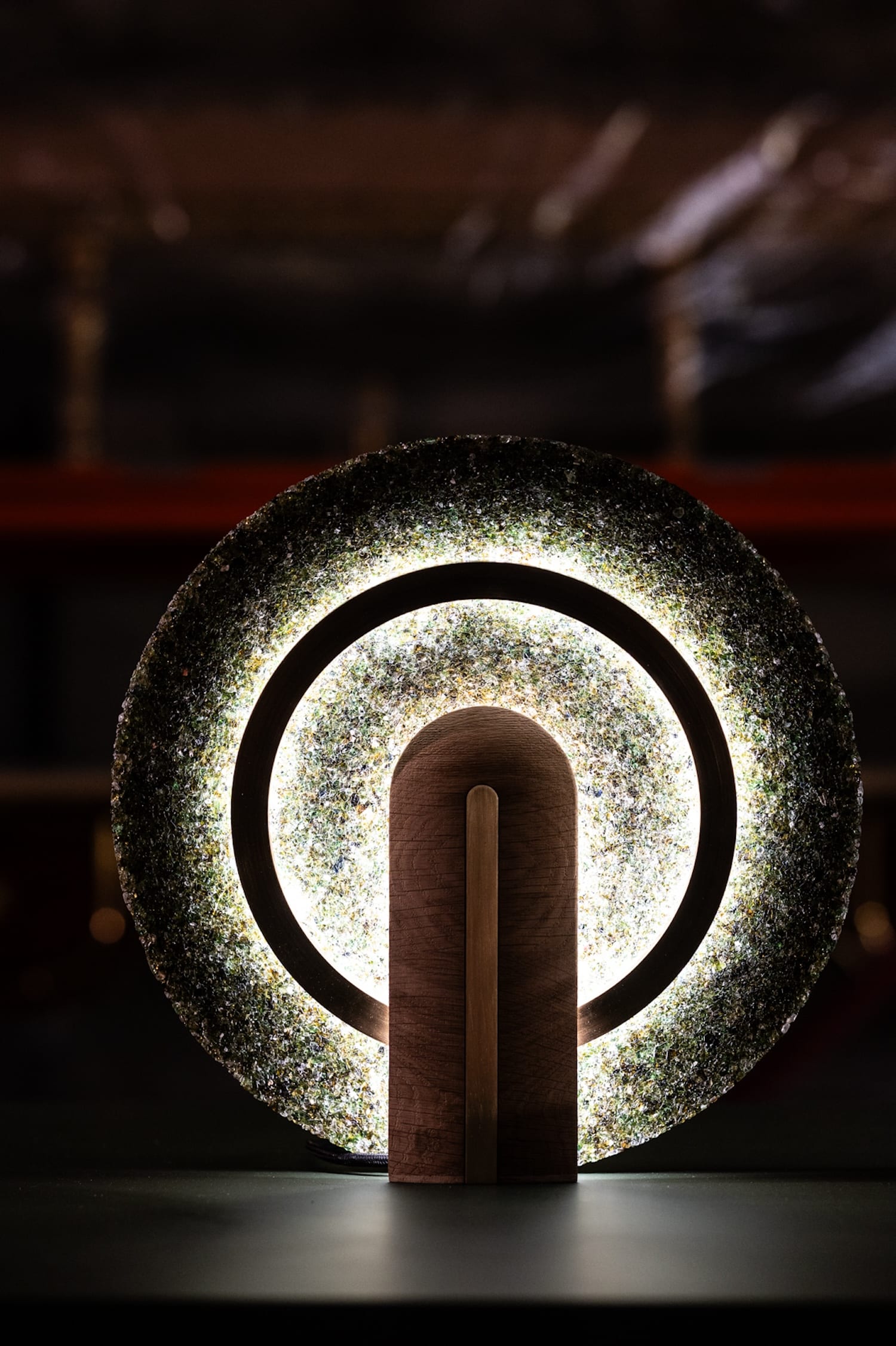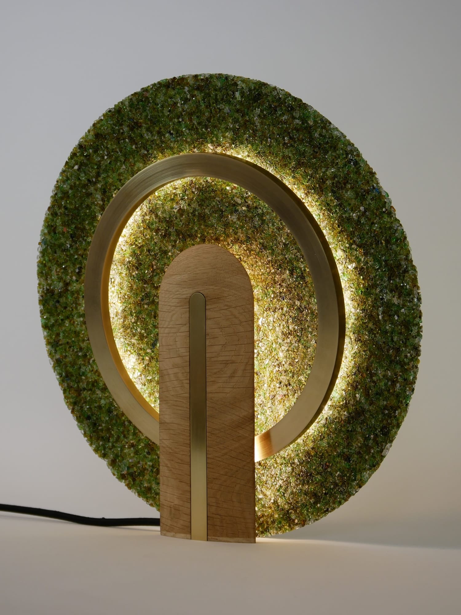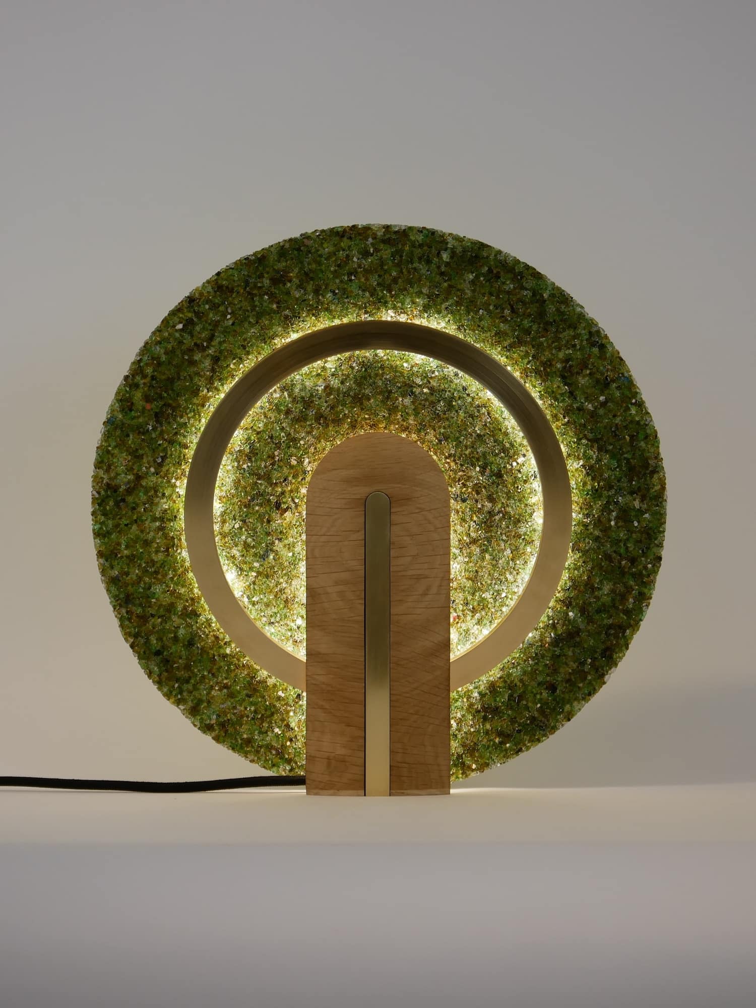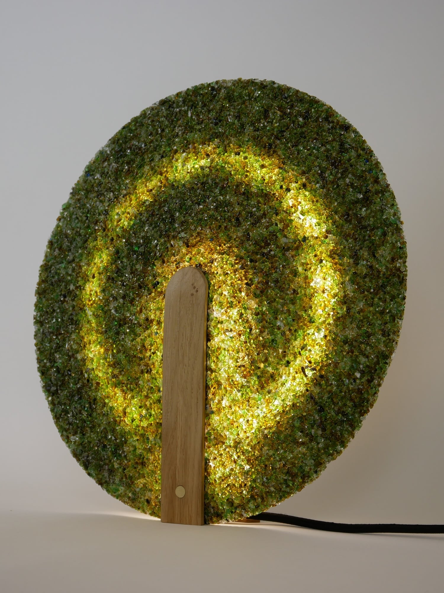 La lampe à poser Cive s’inscrit dans cette même démarche : elle est réalisée uniquement à partir de déchets de verre, une fraction de matière généralement considérée comme ingérable dans les circuits classiques de recyclage.