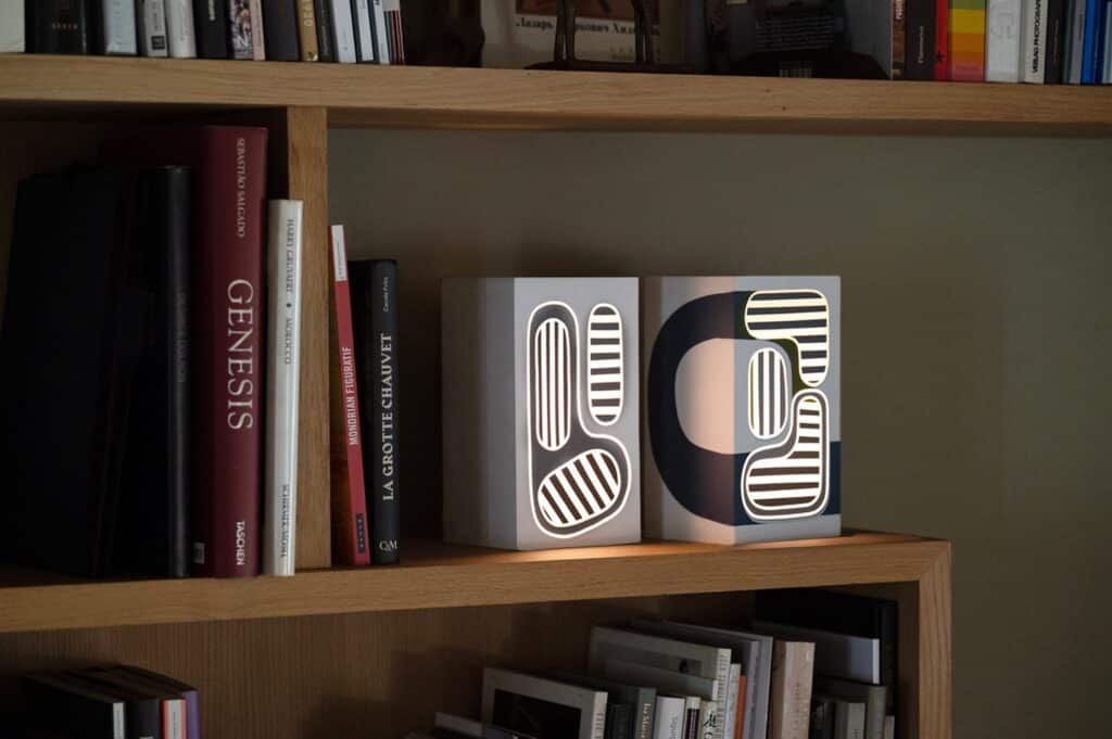 Bruno indique que ces luminaires peuvent « trouver leur place partout dans la maison : dans la bibliothèque, sur un bureau, une console… » Cela permet de penser la lampe non seulement comme source de lumière, mais comme sculpture qui modifie l’ambiance de l’espace. Le fait qu’elle soit de petit format (24 × 13 × 12 cm) permet une intégration fine dans un projet d’intérieur ou dans un contexte architectural plus large.