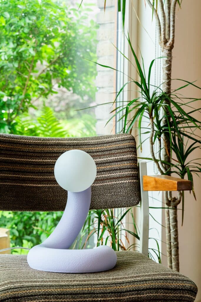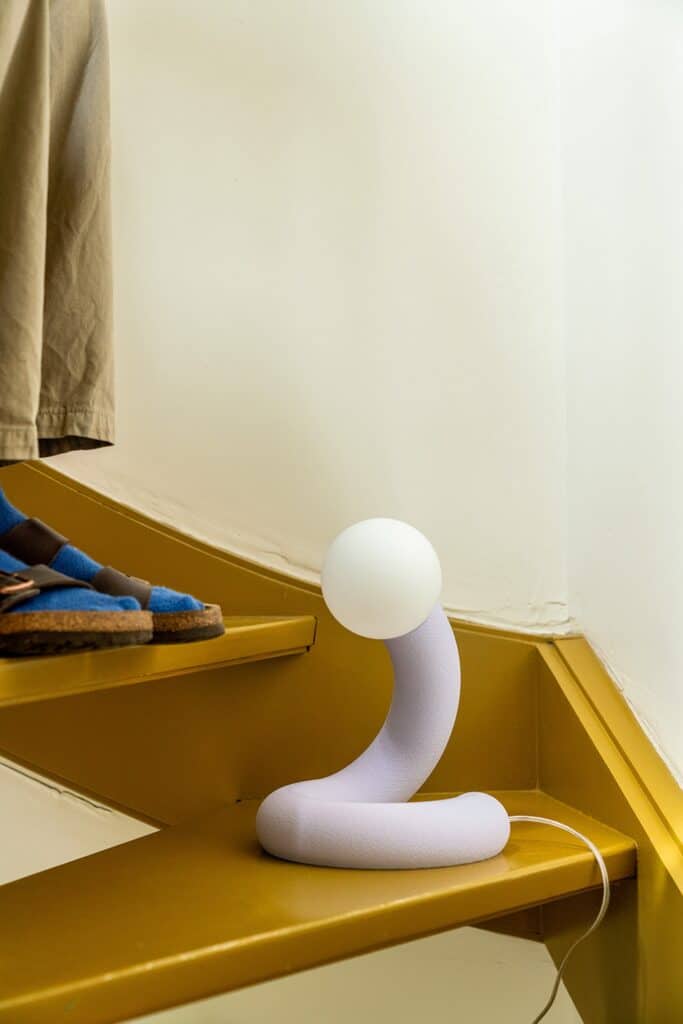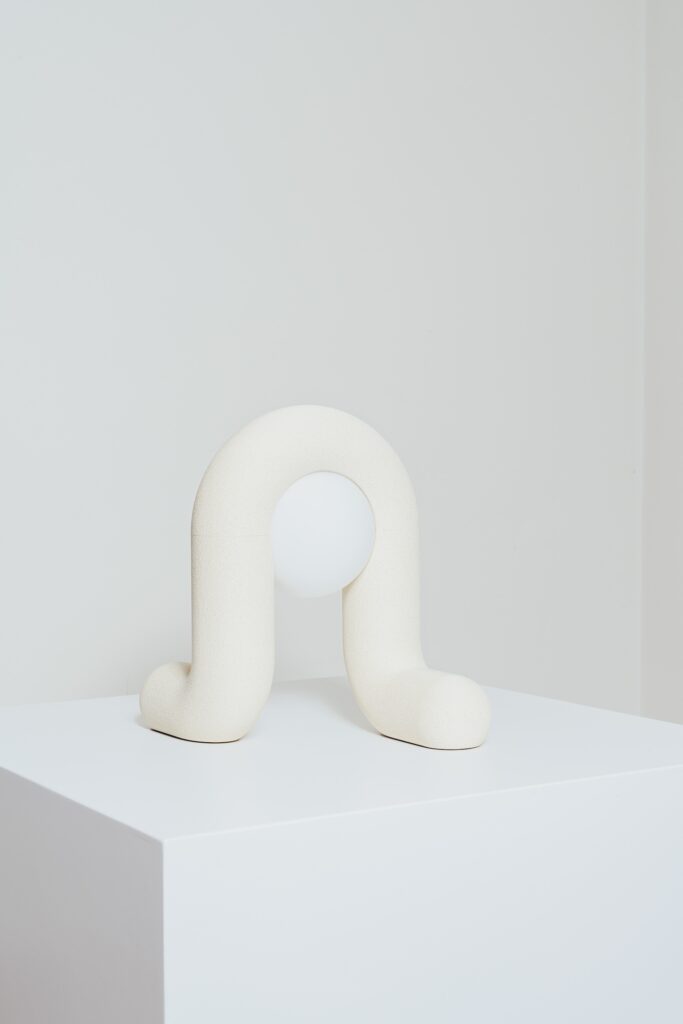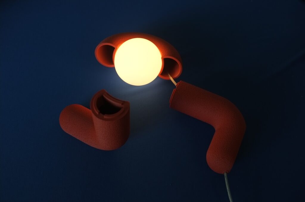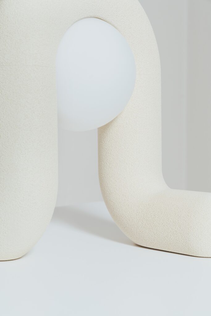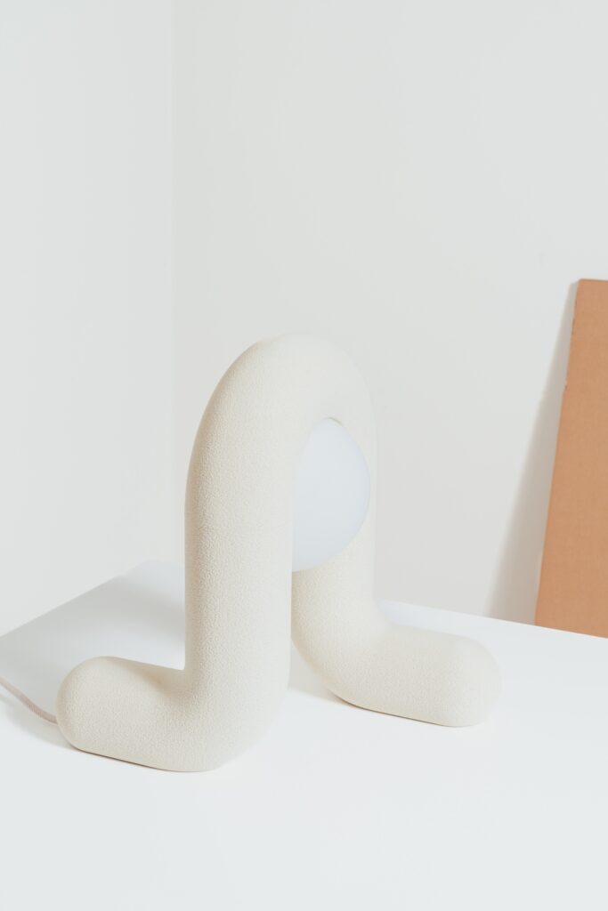 Les recherches autour du luminaire imprimé en 3D continuent de questionner notre rapport à la fabrication additive. Emil Robbrecht, designer belge explore cette voie avec la Dancer lamp, un projet qui conjugue forme organique et ingéniosité technique. Avec ses « pieds » sculpturaux et son globe en verre qui semble suspendu à l’intérieur de la structure, la lampe évoque le mouvement d’une danseuse, offrant une présence sculpturale tout en conservant une certaine légèreté formelle.