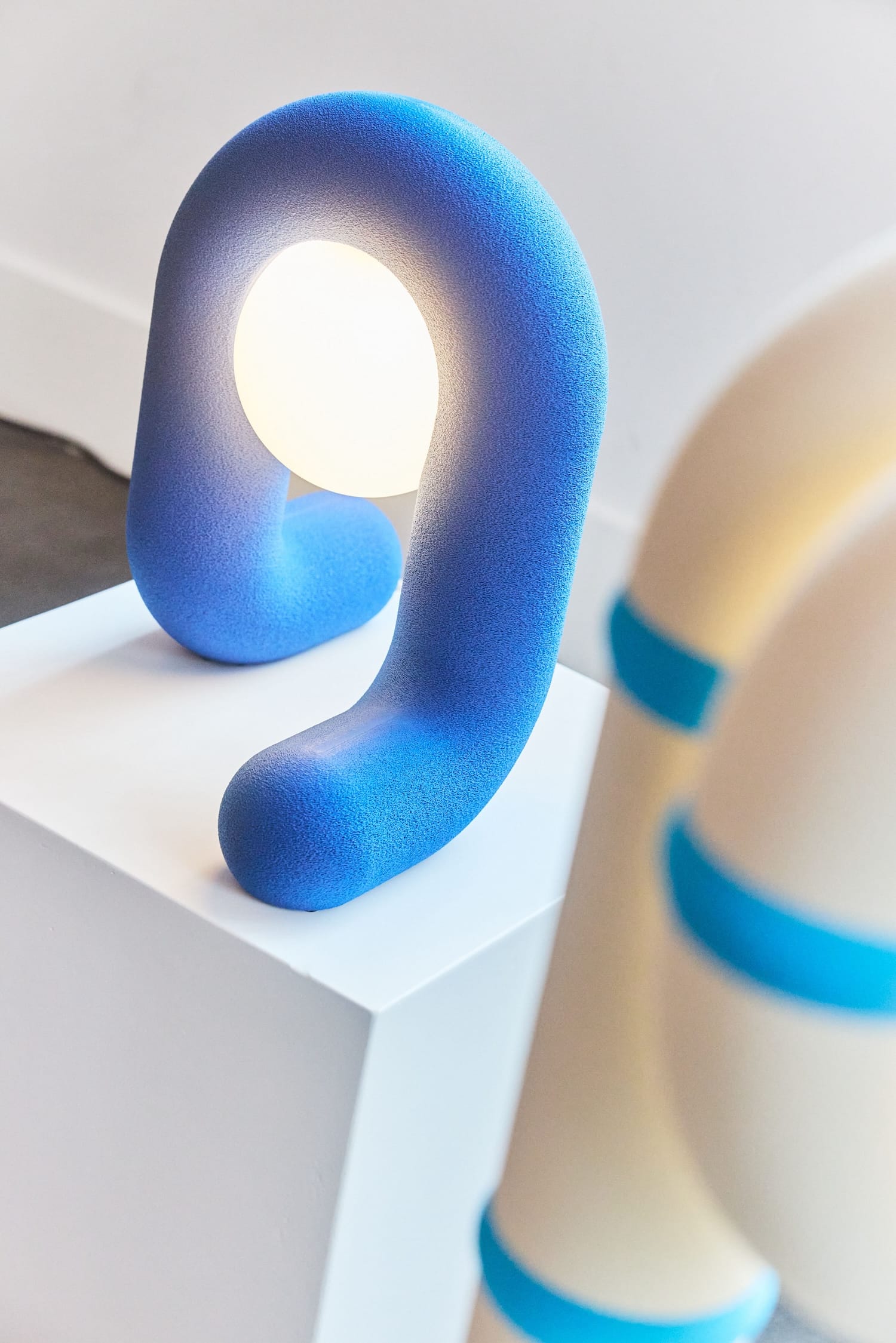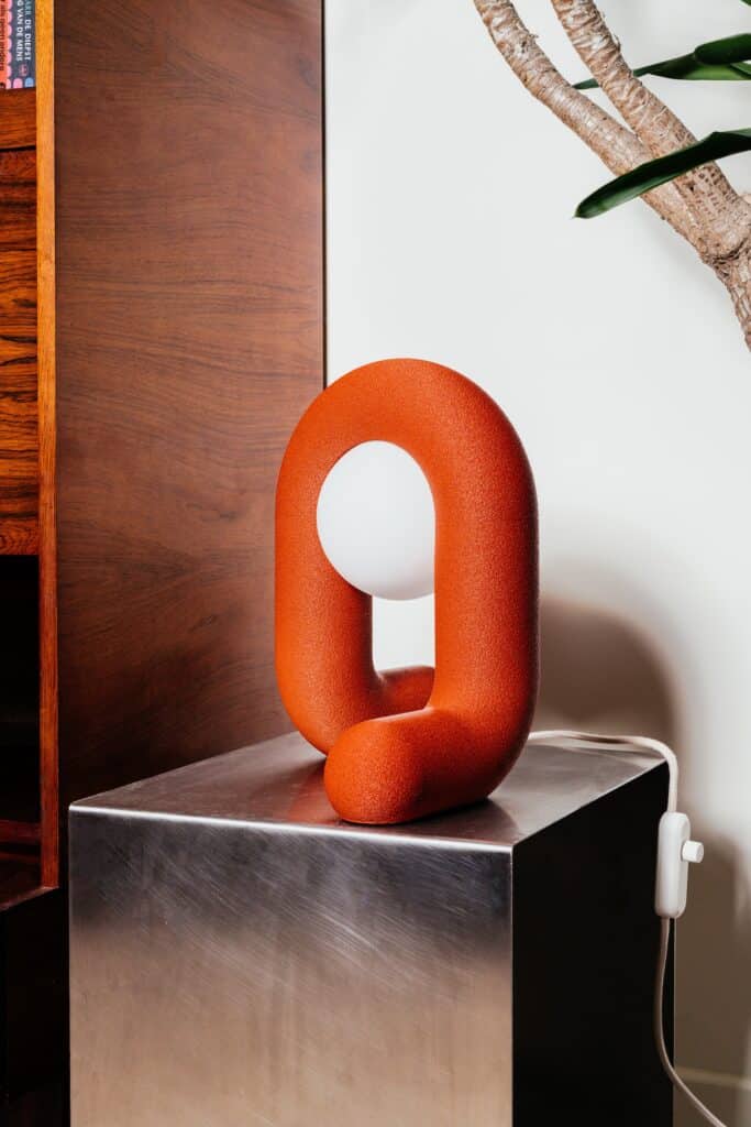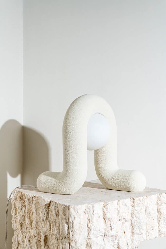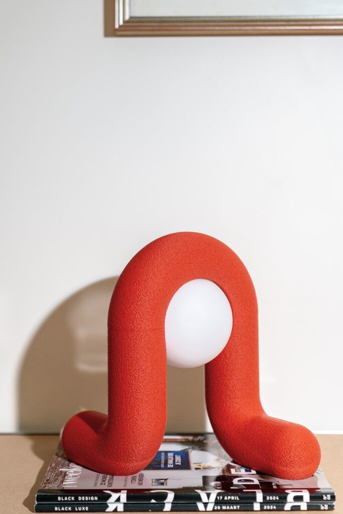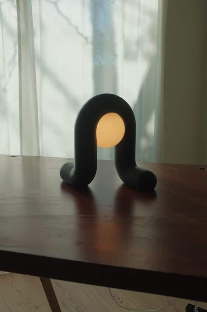 Les recherches autour du luminaire imprimé en 3D continuent de questionner notre rapport à la fabrication additive. Emil Robbrecht, designer belge explore cette voie avec la Dancer lamp, un projet qui conjugue forme organique et ingéniosité technique. Avec ses « pieds » sculpturaux et son globe en verre qui semble suspendu à l’intérieur de la structure, la lampe évoque le mouvement d’une danseuse, offrant une présence sculpturale tout en conservant une certaine légèreté formelle.