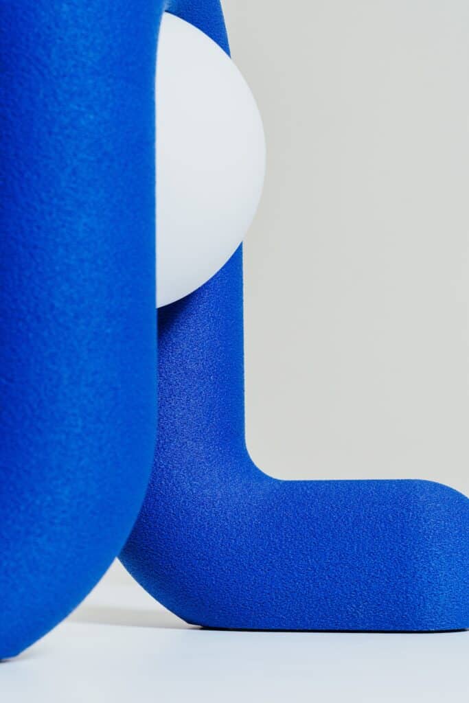La Dancer est imprimée en 3D en trois parties distinctes, ce choix, à la fois conceptuel et technique, permet au globe en verre de se trouver au cœur de l’objet tout en restant entièrement remplaçable. Grâce à un prototypage poussé, un système d’emboîtement sur mesure a été développé et imprimé directement dans les pièces. Une fois assemblées, les pièces s’emboîtent parfaitement, sans colle ni vis, rendant la jonction quasiment invisible. Cette approche rappelle les réflexions menées par Julie Mallet Studio autour du PLA, où le bioplastique devient le support d’une recherche matériau sincère.