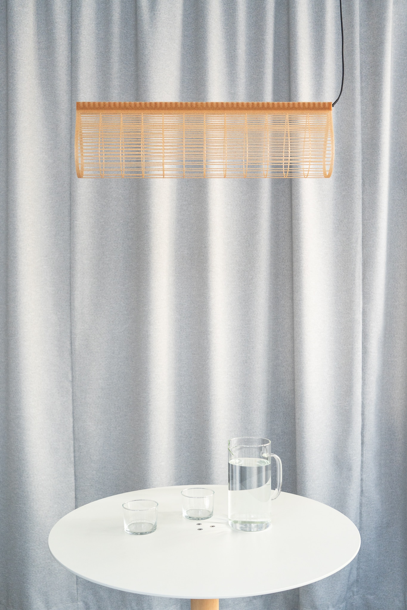 Ce lien entre le matériau et son territoire d’origine permet d’inscrire chaque pièce dans une géographie précise, dans une agriculture sobre et régénérative. Les suspensions Filæ portent ainsi la signature de cette plante : une texture organique, une teinte naturellement dorée sans colorant, des nuances chaudes qui se révèlent sous la lumière et enrichissent les volumes. La matière n’est pas habillée, elle est exposée. C’est elle qui parle.