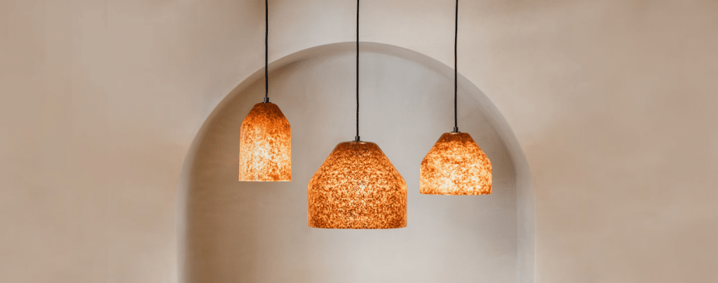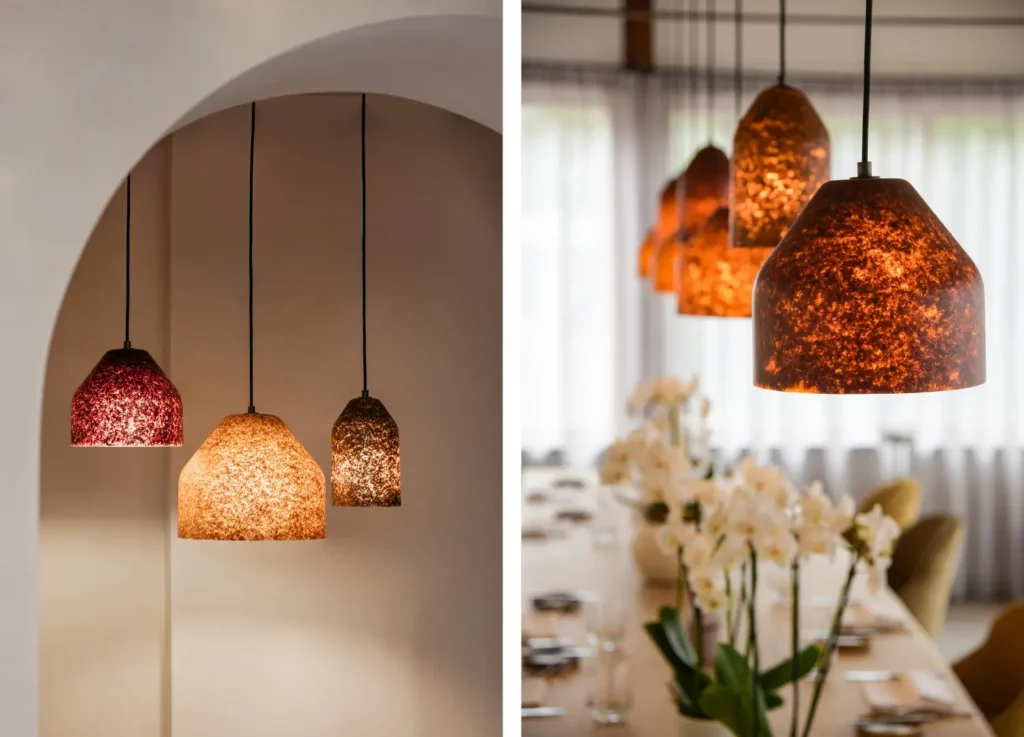 Les premières applications du matériau concernent surtout les luminaires : suspensions, abat-jour, appliques… Mais MIYUCA développe aussi des panneaux pouvant être utilisés comme cloisons décoratives, plateaux ou revêtements muraux.