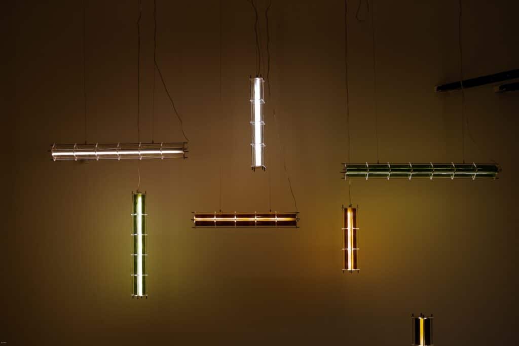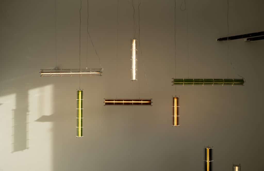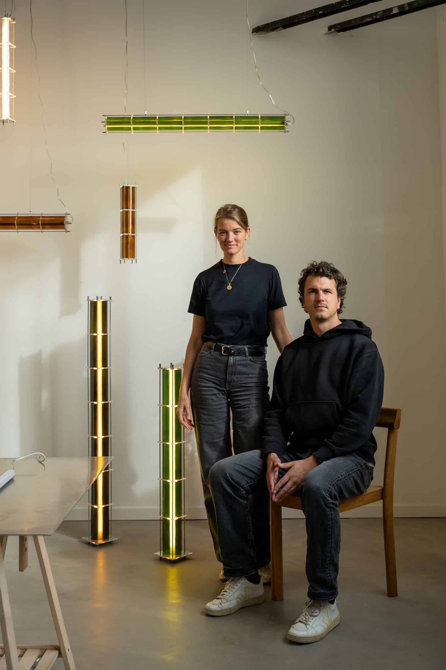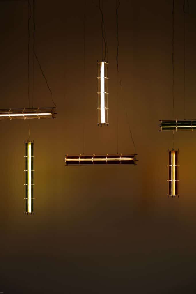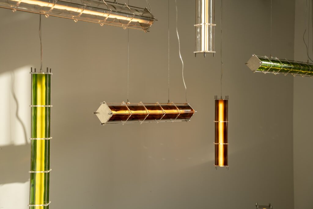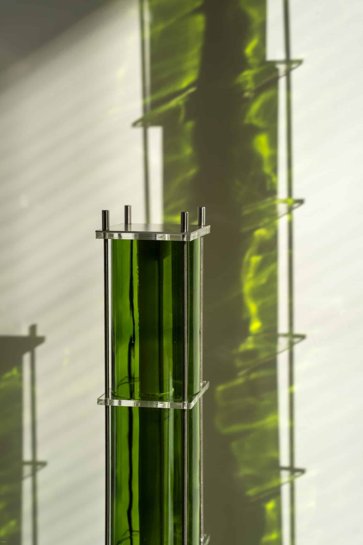 Le fruit de cette transition prend forme dans une première collection baptisée CYL, pensée en collaboration avec Théo Charasse. Designer connu pour ses objets à la fois poétiques et structurés, il a trouvé dans le verre recyclé un terrain de jeu stimulant. Le point de départ ? La bouteille, encore et toujours. Coupée, superposée, revisitée. Le cylindre devient module, rythme, structure. Le luminaire se pense alors en volumes verticaux et horizontaux, jouant avec les transparences, les teintes et les reflets.