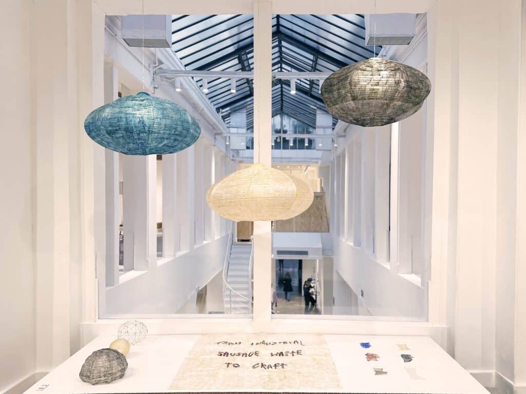 Le projet « Holm » incarne cette recherche de simplicité et d’impact. Déclinée en plusieurs versions, cette suspension rappelle la série Akari d’Isamu Noguchi, tout en en renouvelant l’esthétique par la transparence charnelle de l’intestin. Présentée notamment à la Paris Design Week ou au sein du studio danois Lendager, la pièce réconcilie technique, poésie et circularité.