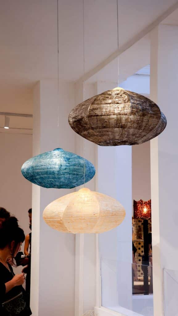 Autre projet phare, « Louvanes », se déploie comme un vitrail vivant, fusion de nids, de lumière et de textures étranges. Ses formes libres, ses teintes végétales et son échelle imposante en font un objet-luminaire qui flirte avec l’installation monumentale. Il n’est plus seulement question de design d’objet, mais bien de design d’émotions.