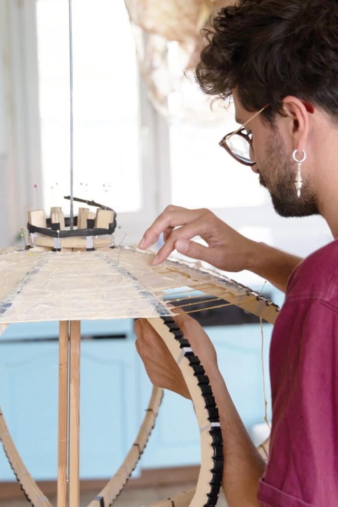 Un matériau aussi inattendu qu’oublié, que Thibault Philip, designer et artiste basé à Rennes, détourne et sublime au fil de ses projets, non sans nous rappeler le travail Kami-Kami avec d’autres déchets…