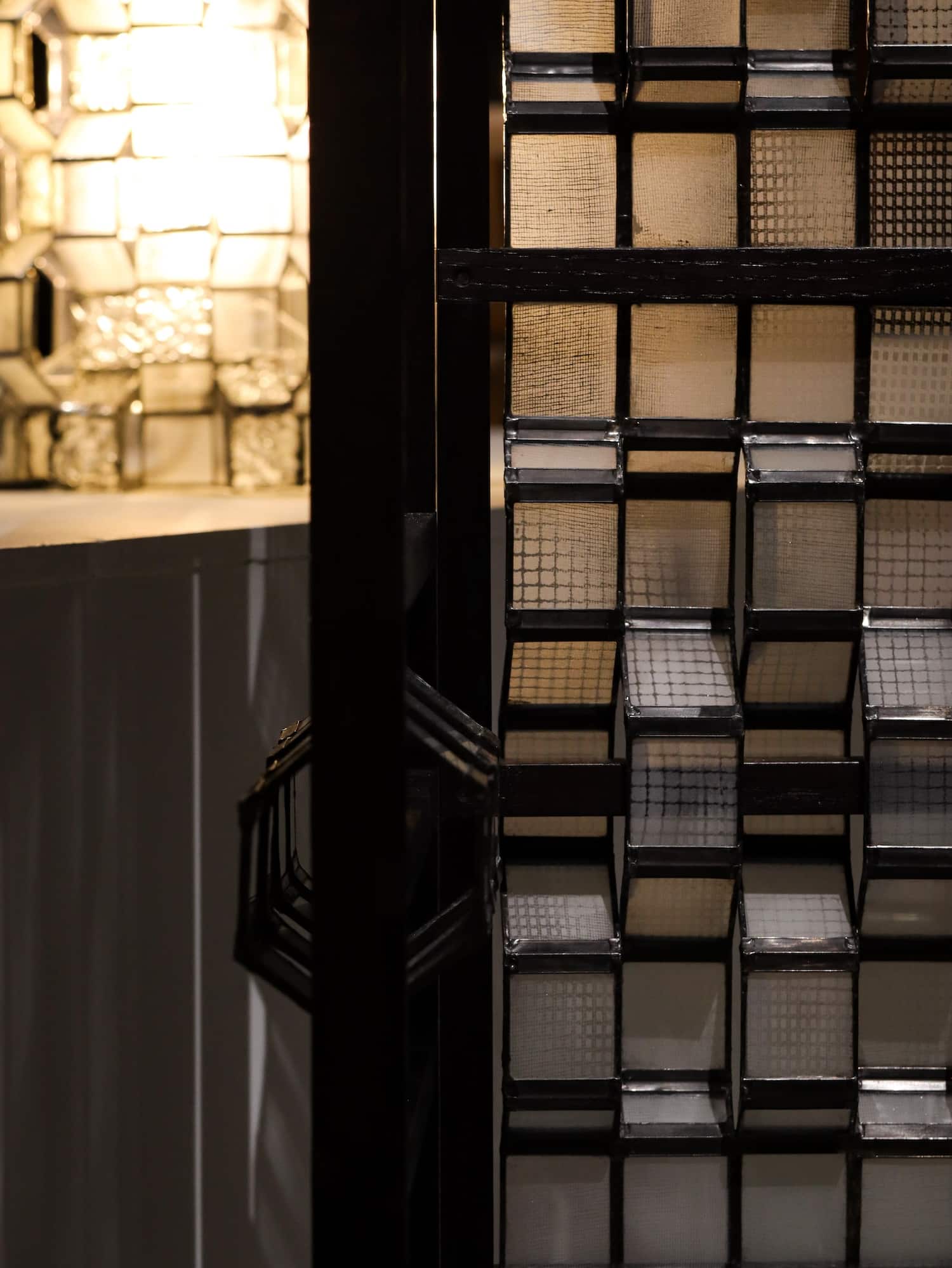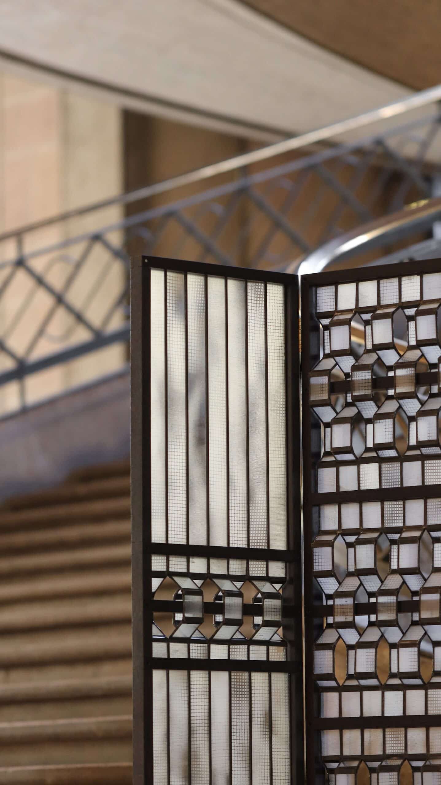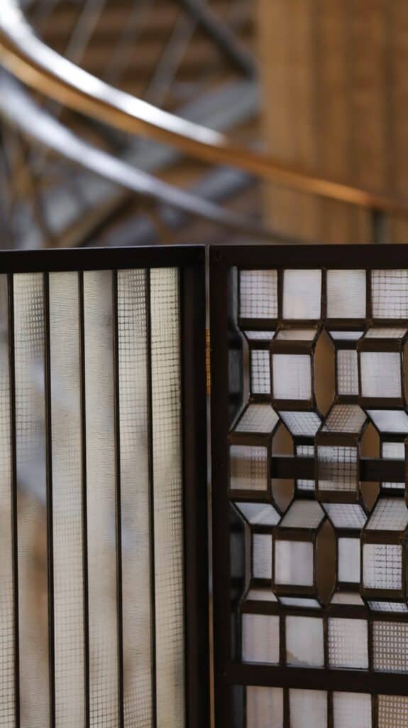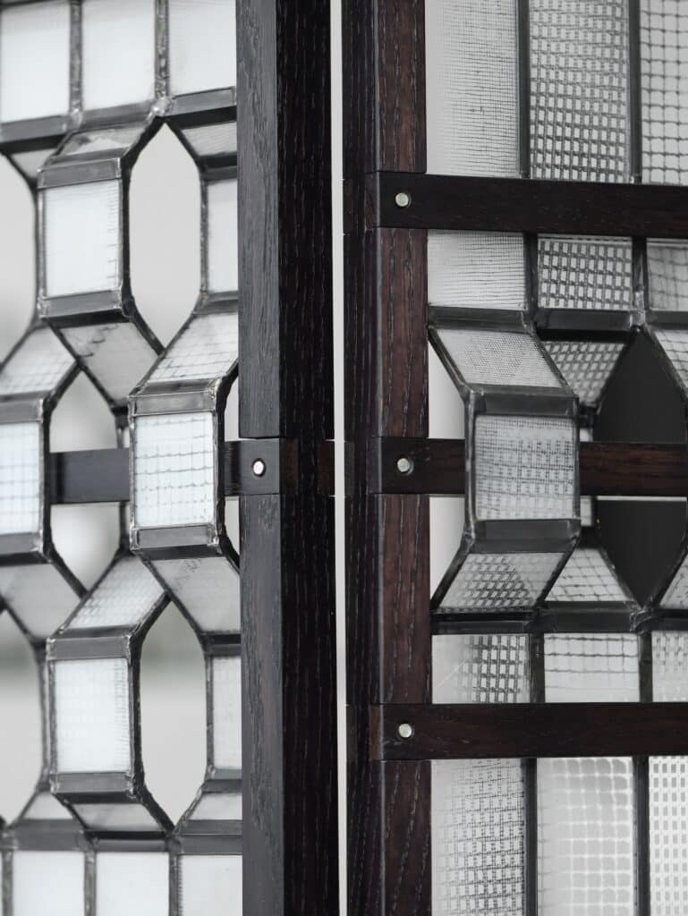 Ce contraste entre robustesse et fragilité, entre opacité suggérée et transparence maîtrisée, crée une tension visuelle captivante. Le paravent ne cherche pas à se fondre dans l’espace mais à en révéler les dimensions cachées, à travers le prisme de la lumière et du mouvement.