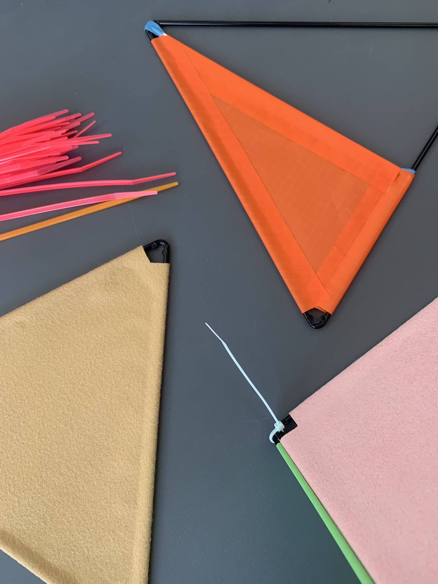 Le résultat prend la forme de deux objets distincts, deux tentes simplifiées, chacune porteuse d’une identité propre.