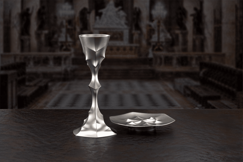 L’orfèvrerie liturgique française connaît un renouveau singulier depuis quelques années. Julien Roos, jeune designer formé à l’ENSAAMA, vient de livrer une vision, un projet de calice et une patène destinés au Chapitre de Notre-Dame de Paris. Ce projet, amorcé fin 2023 après une visite du chantier de restauration de la cathédrale et de son trésor exposé au Louvre, témoigne d’une approche où le designer succède à l’orfèvre traditionnel, ou plutôt comment ils peuvent communiquer…