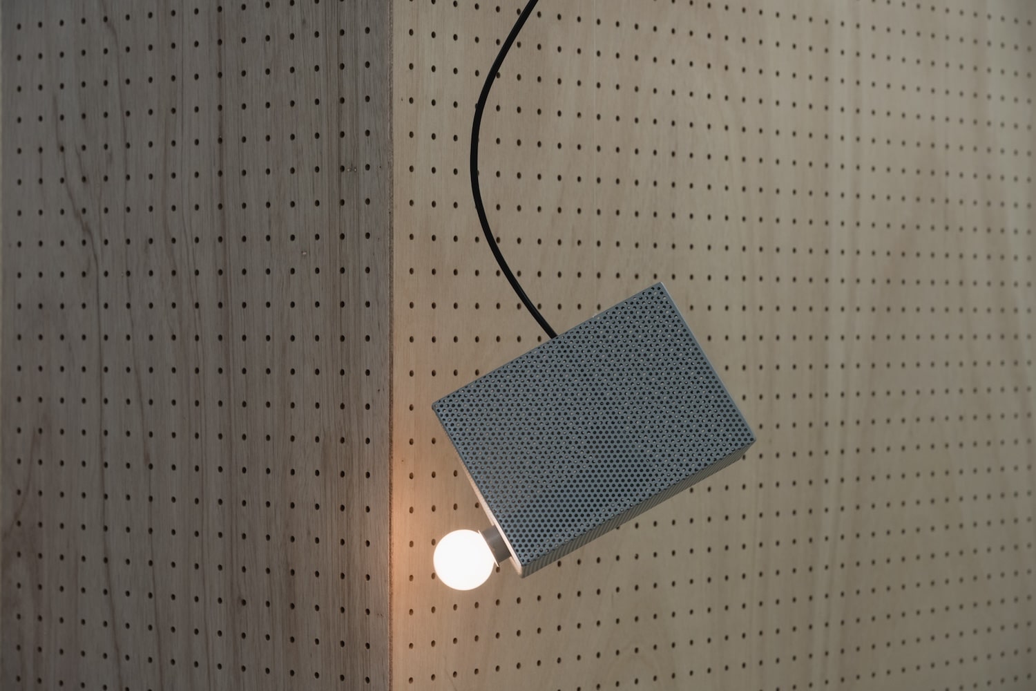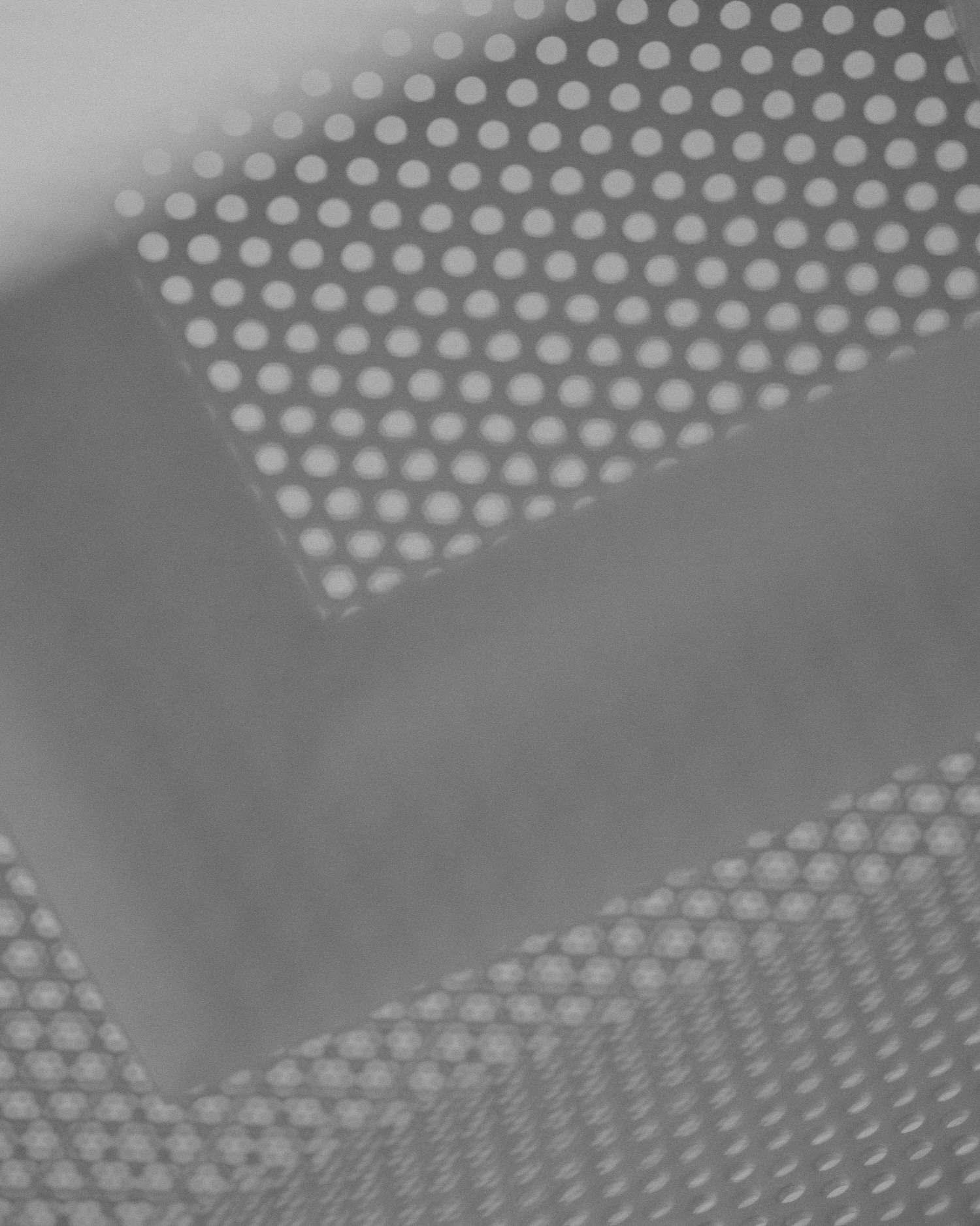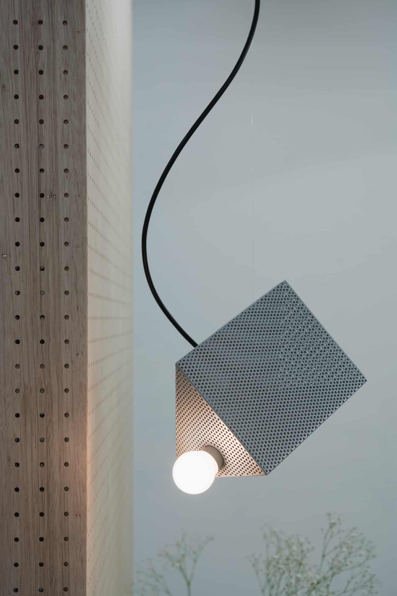 On la retrouve dans les façades de parking, les grilles de ventilation, les faux plafonds acoustiques et quelques chaises de cantine. Fonctionnelle, répétitive, bon marché, peu d’architectes lui ont accordé autre chose que de la considération technique. Mathieu Matégot, dans les années 1950, avait pourtant ouvert une piste intéressante avec ses tables gigognes en tôle perforée colorée, déjà capables de faire passer ce matériau industriel du côté de l’objet désirable. La lampe Piogga d’Alexandre Pain avait, plus récemment, exploré la façon dont une feuille de tôle ajourée dialogue avec la lumière. EETAL et monoya arrivent en 2026 avec une proposition différente : ils ne cherchent pas à rendre la tôle perforée utile, ni décorative. Ils la placent au centre d’une question sur la perception.