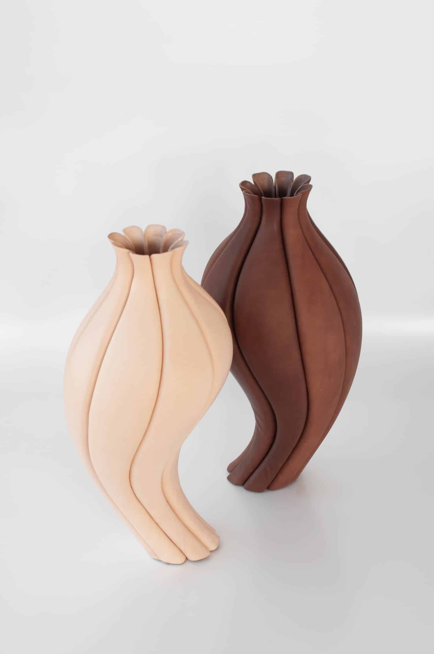 Depuis son atelier de Tel Aviv, l’artiste du cuir, Talia Luvaton, fondatrice de Luvaton Studio en 2021 pousse le cuir tanné végétal là où on ne l’attend pas vraiment : ni en portefeuille, ni en doublure de canapé, mais en vases sculpturaux aux lignes architecturales. Et le mois d’avril 2026, elle pose ses pièces au SaloneSatellite, à Milan, avec en exclusivité mondiale sa nouvelle collection TRACE.
